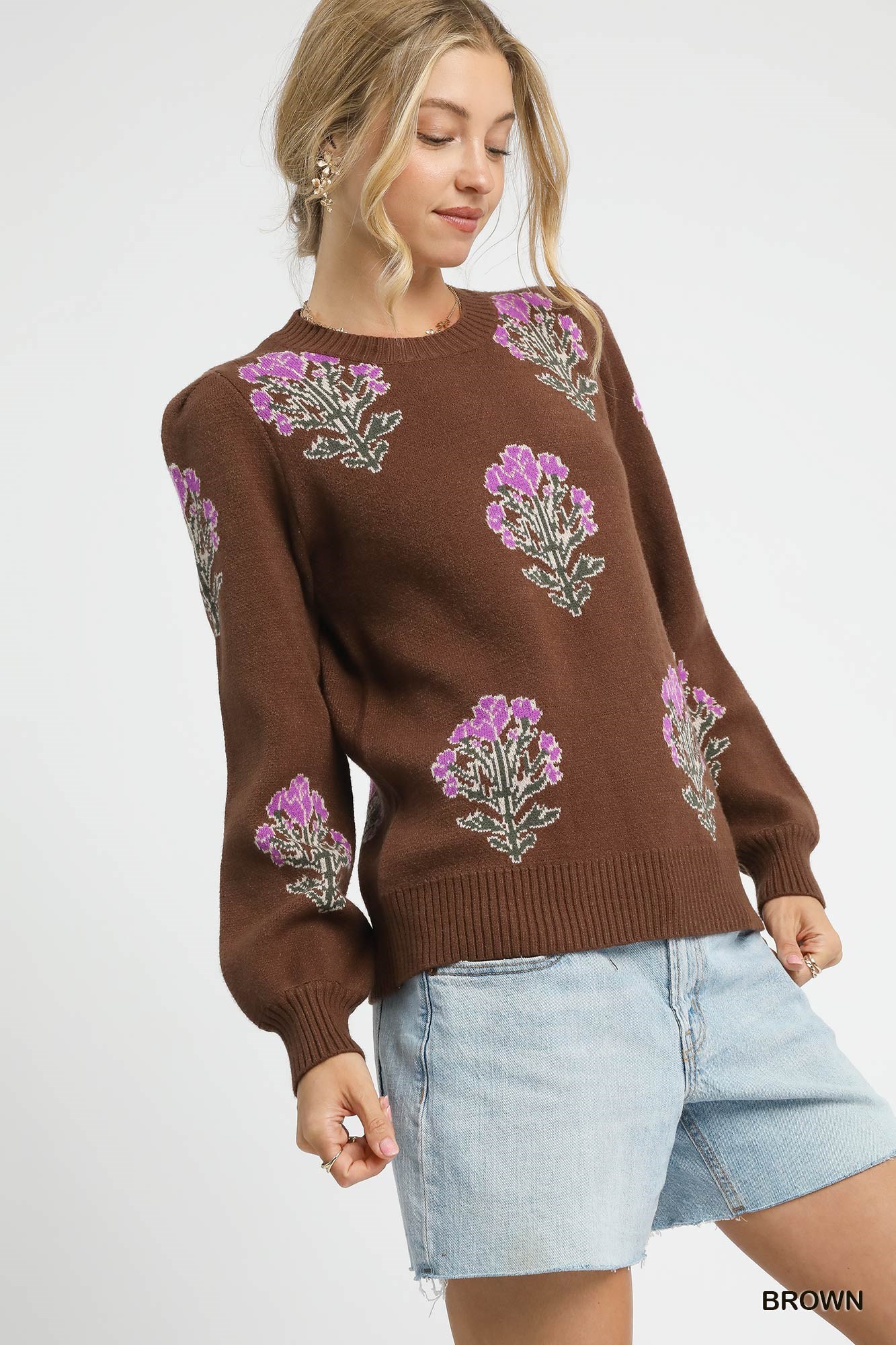 This Single Flower Stem Jacquard pullover sweater is a cozy and stylish choice for your wardrobe. Made from a soft knit blend, it offers comfort and warmth. The crew neck and long sleeves with ribbed cuffs provide a classic and timeless look. The ribbed bottom hem adds a cozy and snug fit to the sweater. Perfect for casual outings, this pullover sweater is a versatile and chic addition to your collection.