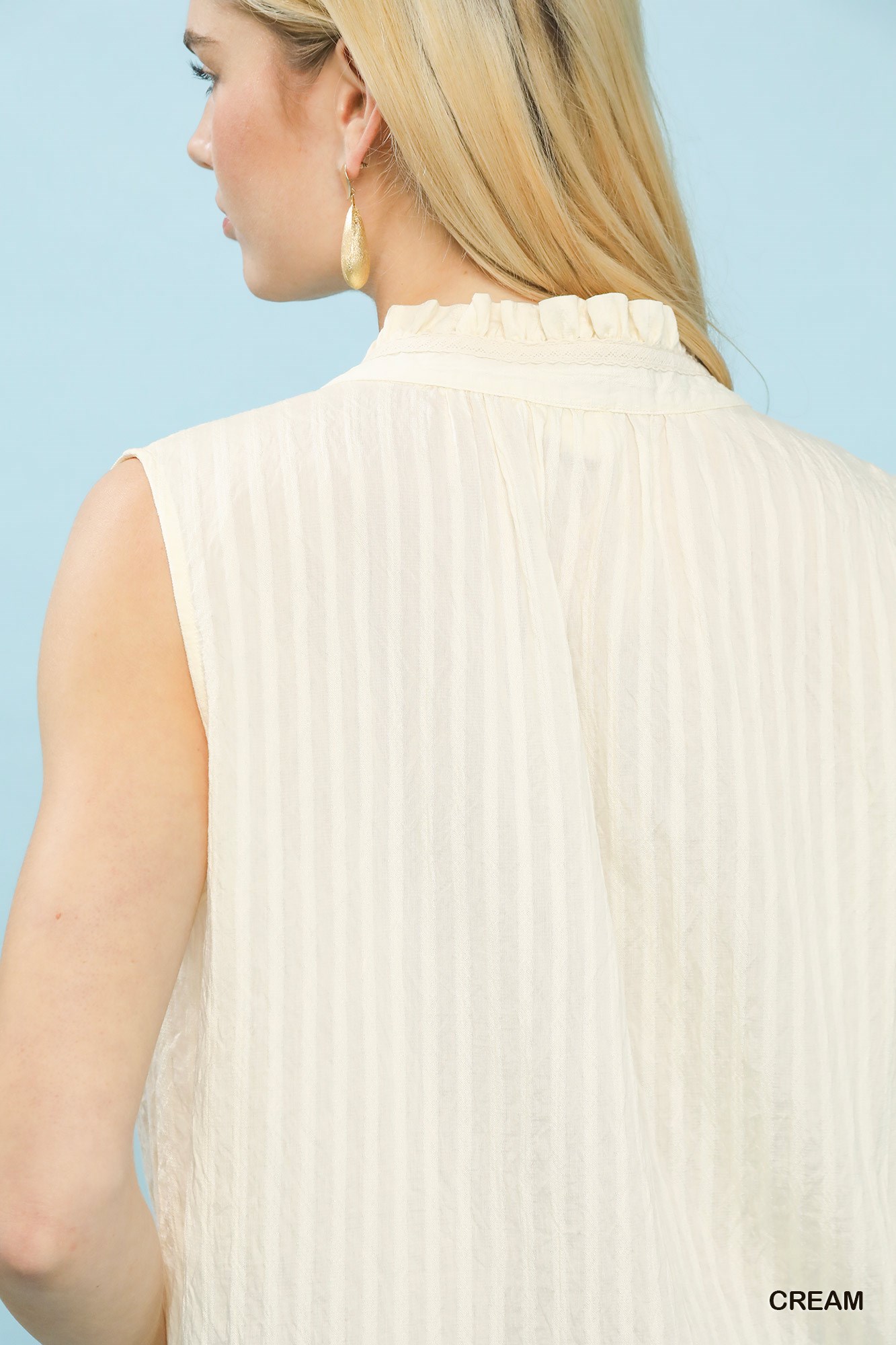 Umgee Sleeveless Textured Split Neck Top
