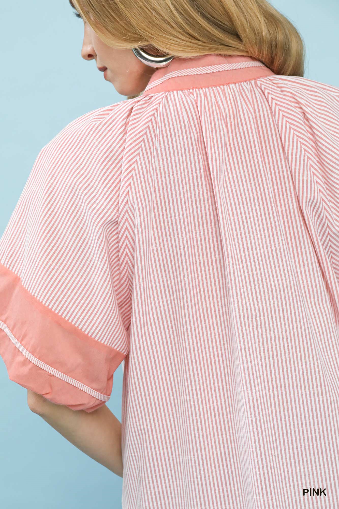 Umgee Striped Mixed Puff Sleeve Blouse