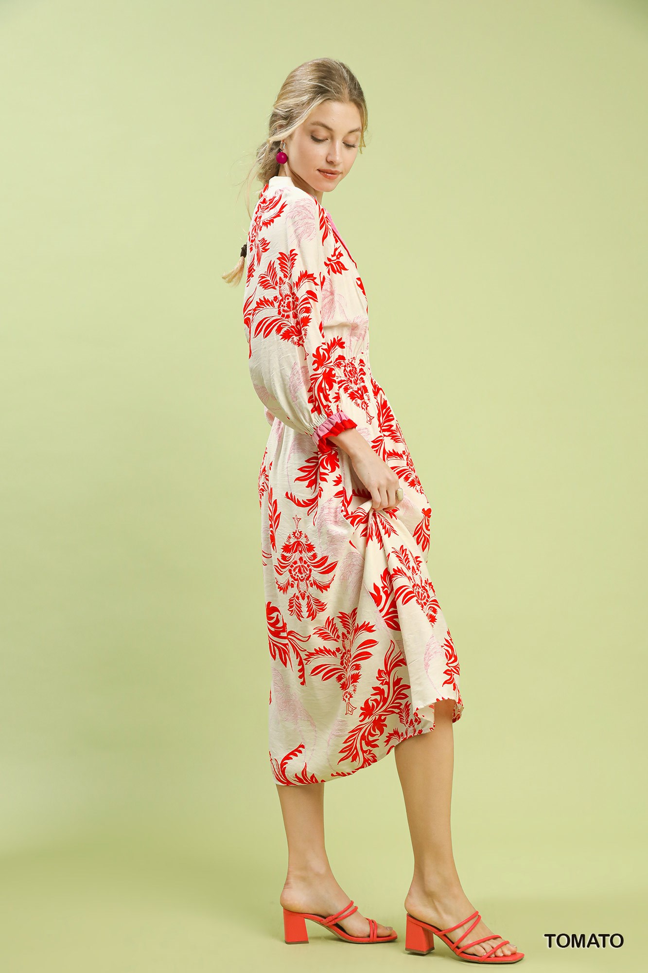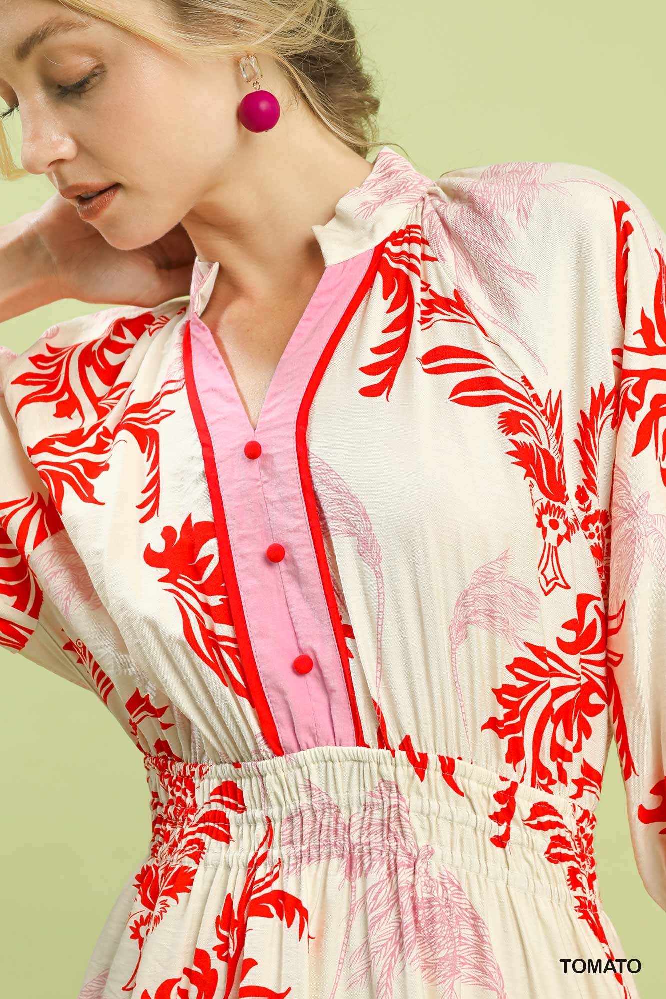 Umgee Tropical Print Button Detail Midi Dress
