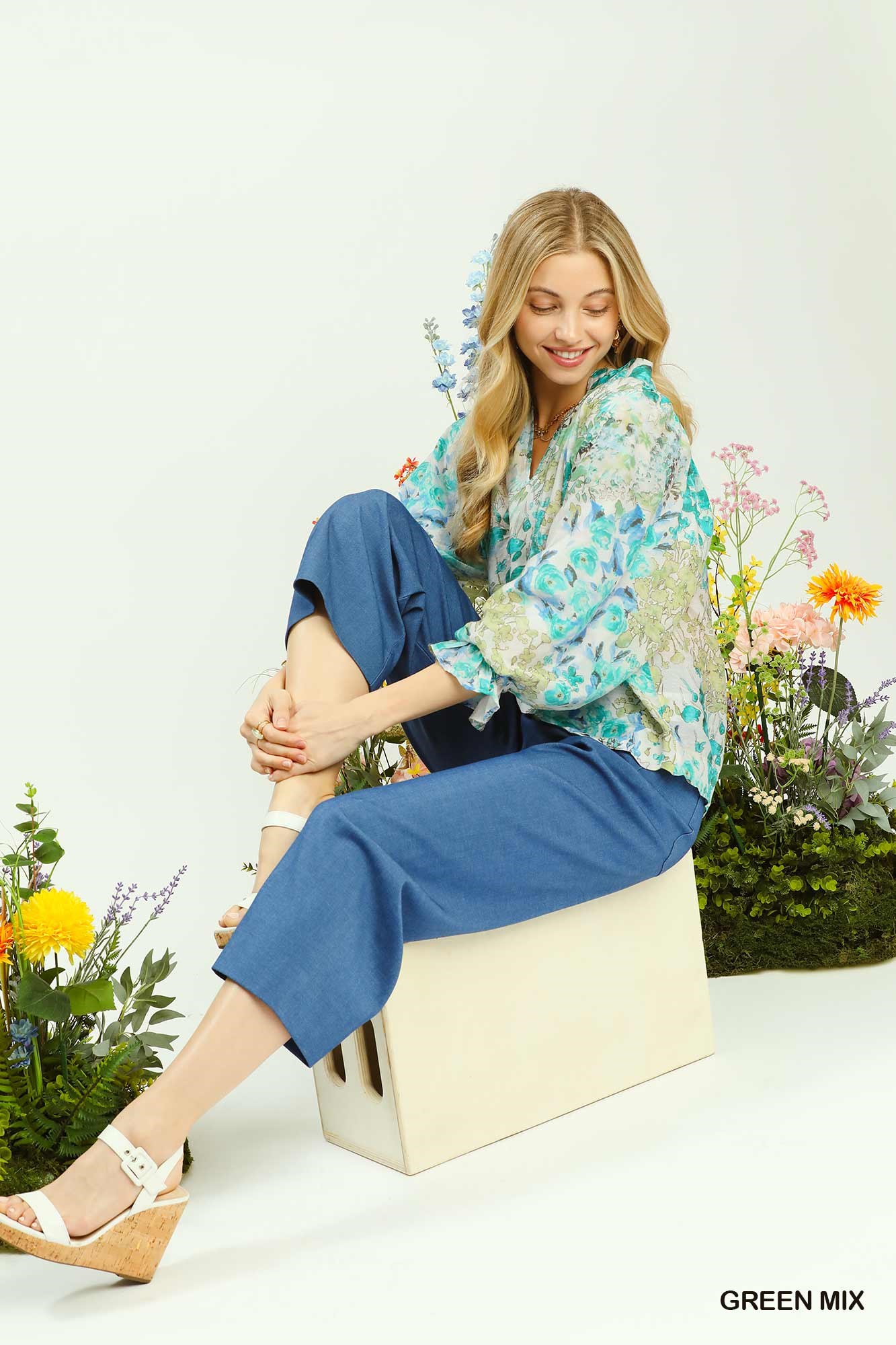 This Watercolor Floral Blouse features soft, dreamy watercolor floral prints that bring a fresh and romantic vibe to any outfit. It is designed with delicate flounce sleeves that add a gentle, feminine flow and movement with every wear. Crafted from lightweight, breathable fabric, it ensures all-day comfort while maintaining a polished and elegant silhouette. The loose yet flattering fit makes it versatile for both casual daily looks and dressier occasions. The beautiful watercolor pattern blends soft hues seamlessly, creating an artistic and eye-catching aesthetic that stands out effortlessly.