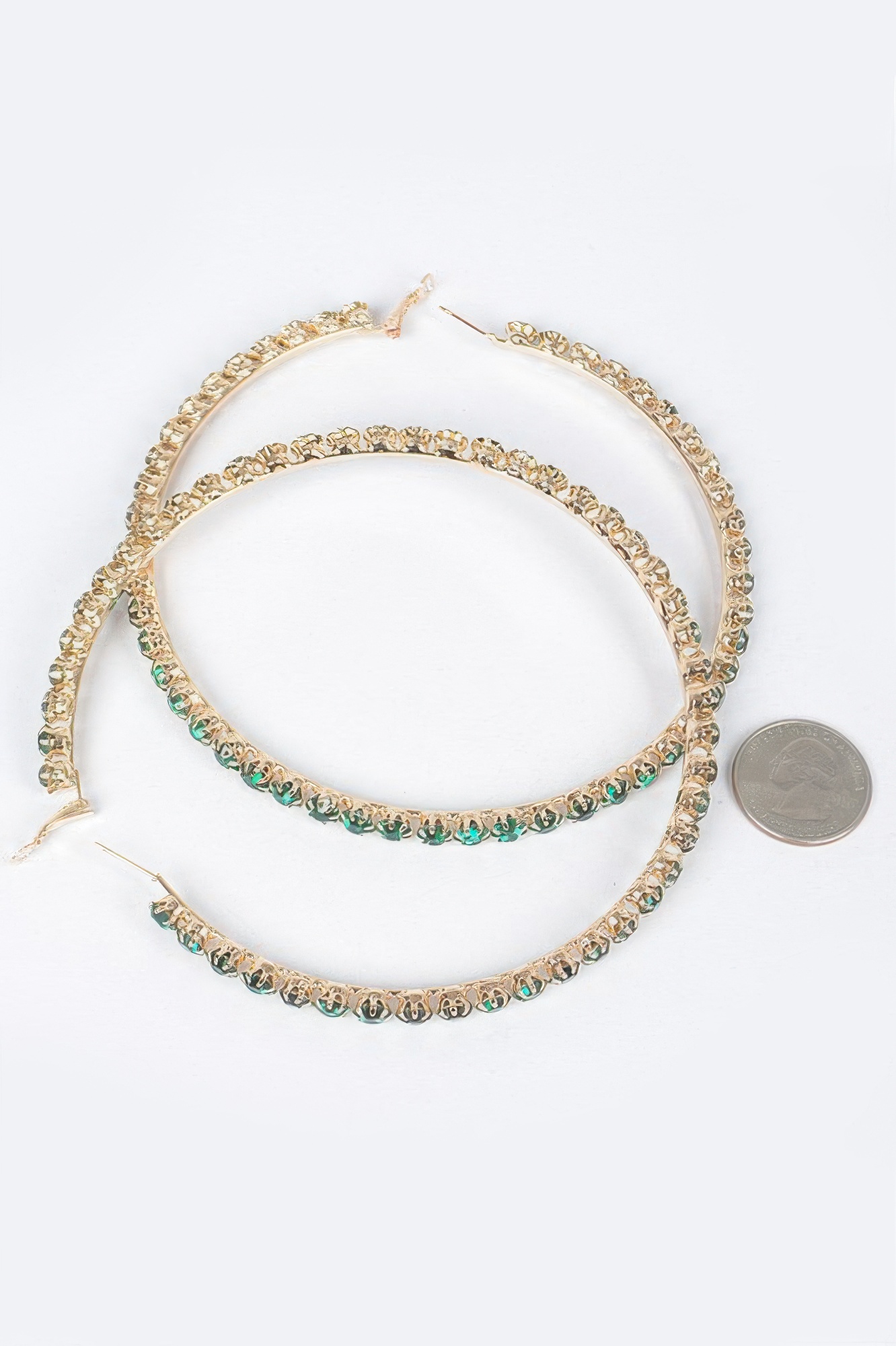 Unique upside down hoop design with rhinestone accents