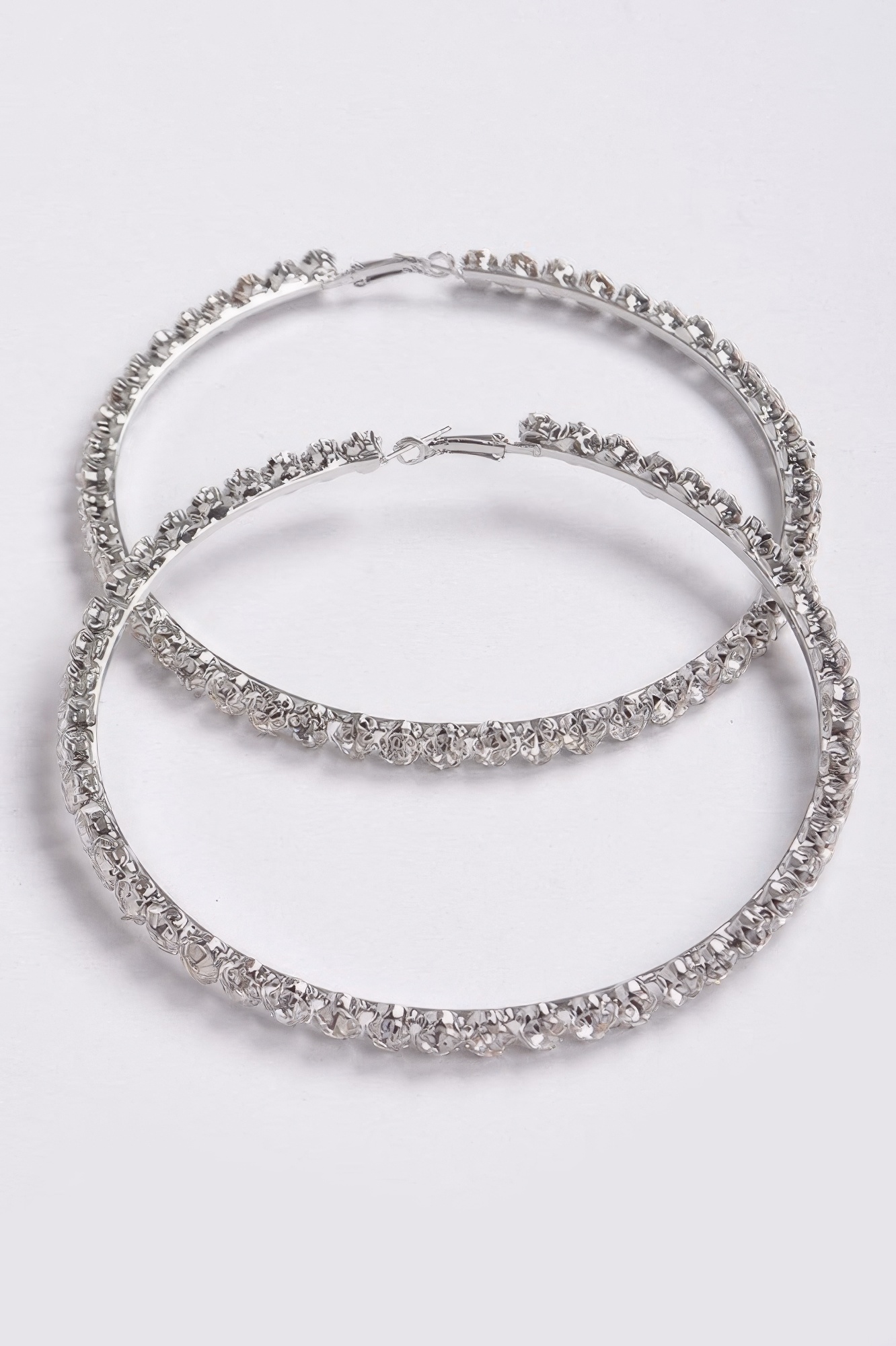The Upside Down Multi Rhinestone Hoop Earrings offer a modern twist on the classic hoop design. Featuring a unique inverted hoop silhouette adorned with shimmering rhinestones, these earrings bring a contemporary edge to statement jewelry. The sparkling accents enhance the bold structure while reflecting light beautifully with every movement. Their oversized shape creates a striking visual effect that complements both casual and dressy outfits. Despite their dramatic appearance, the lightweight design ensures comfortable wear throughout the day or night. The distinctive hoop orientation makes them a standout piece in any accessory collection. Perfect for fashion forward styling, these earrings combine glamour with modern design.