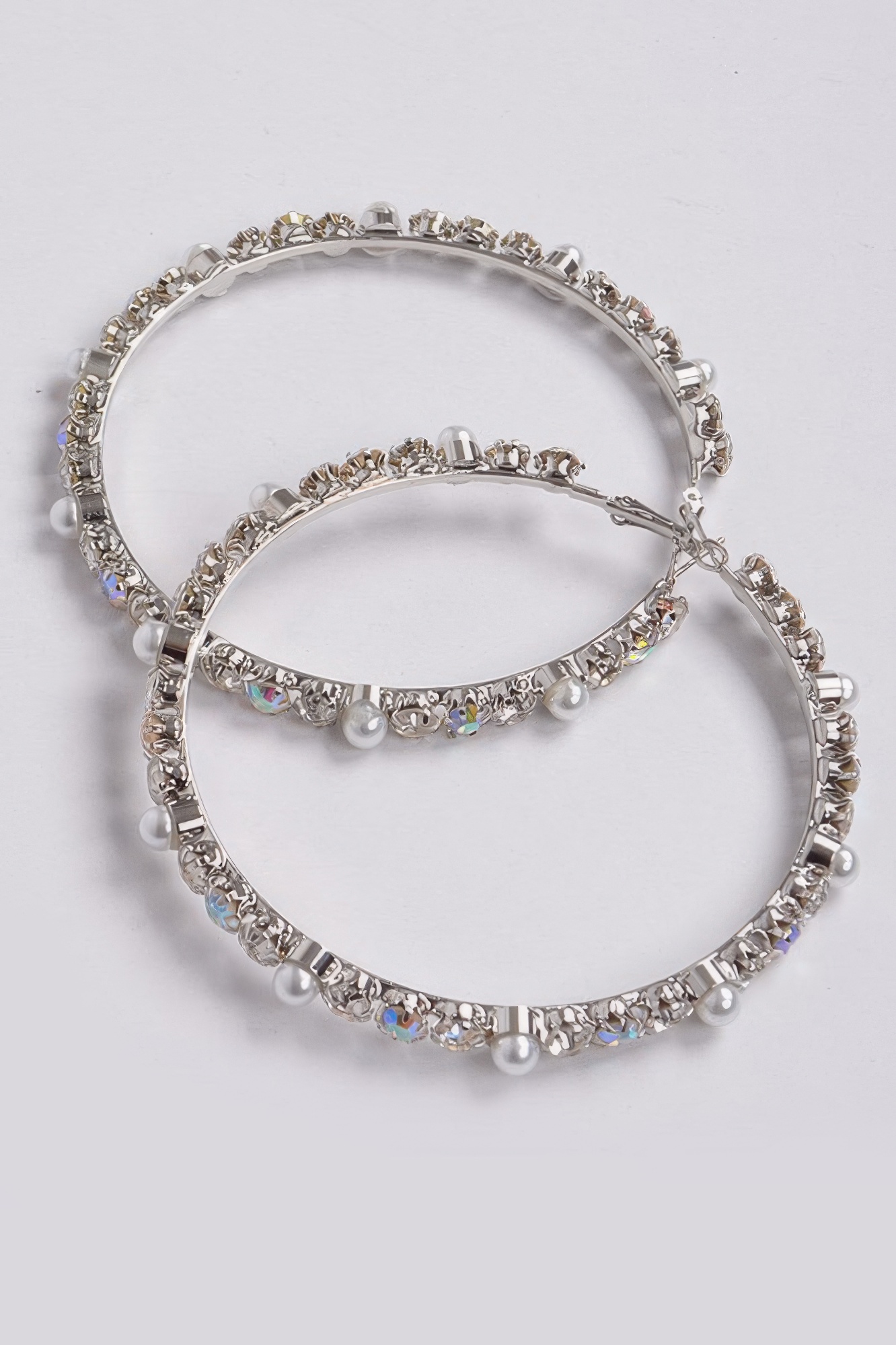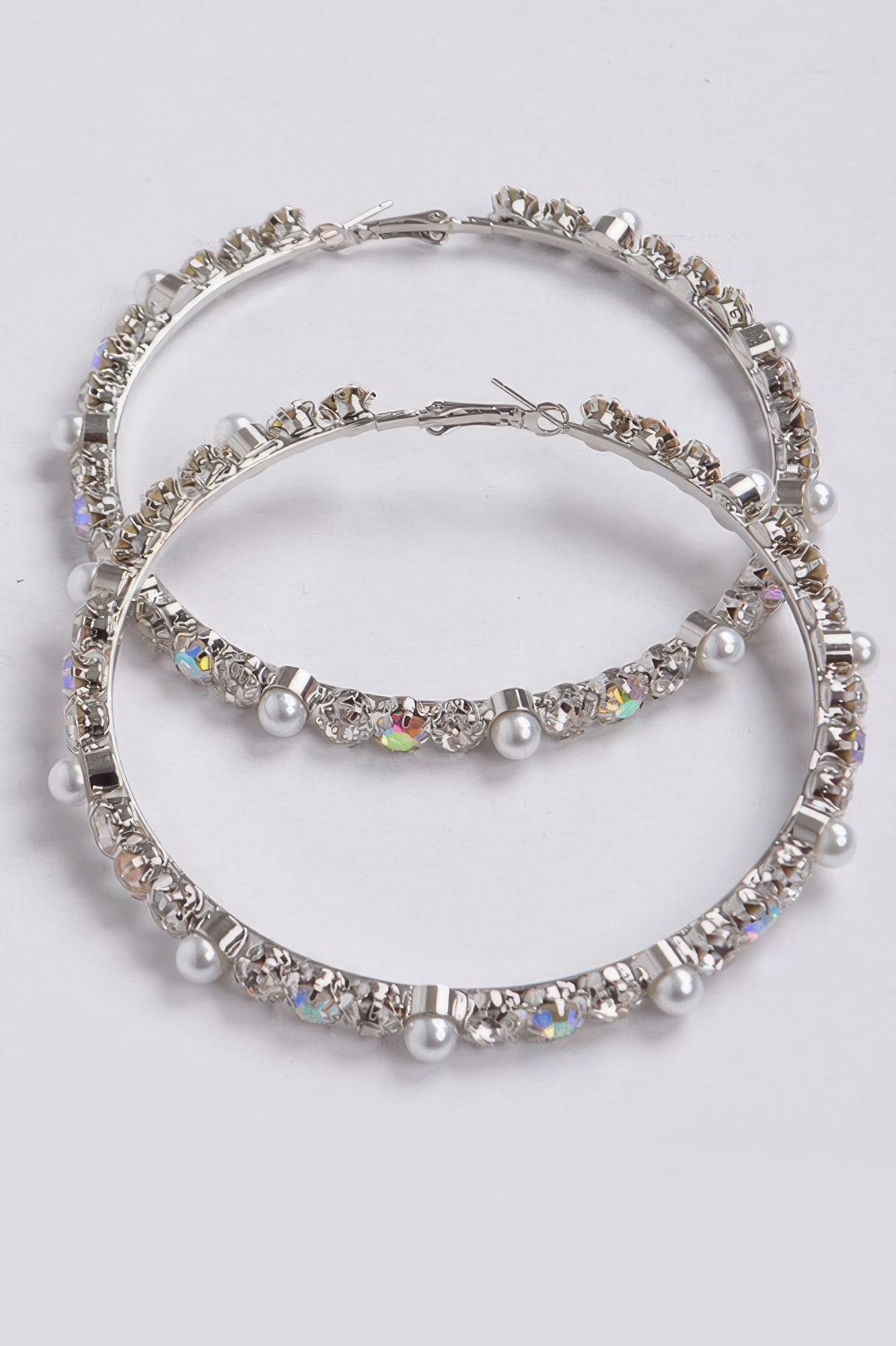 Hoop earrings with rhinestone and pearl bead accents