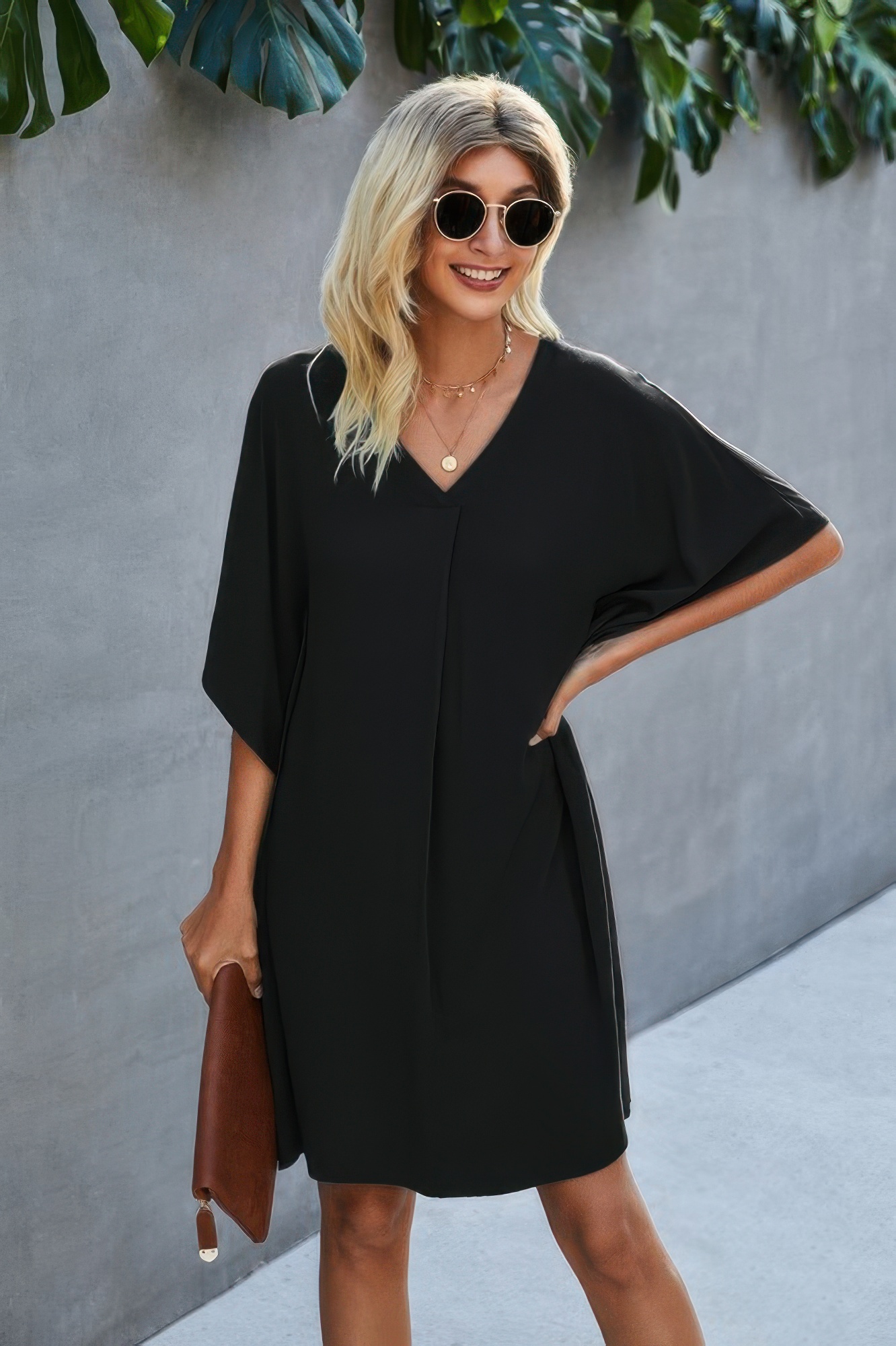 The V Neck Solid Short Sleeve Dress is a versatile warm-weather essential. Made from breathable, lightweight rayon, it offers soft comfort with a breezy feel. The V neckline and relaxed silhouette provide a flattering fit that's easy to style. Perfect for vacations, casual days, or running errands, this short dress will quickly become a favorite in your rotation. Simple yet stylish, it works well with sandals or sneakers for an effortless look.
