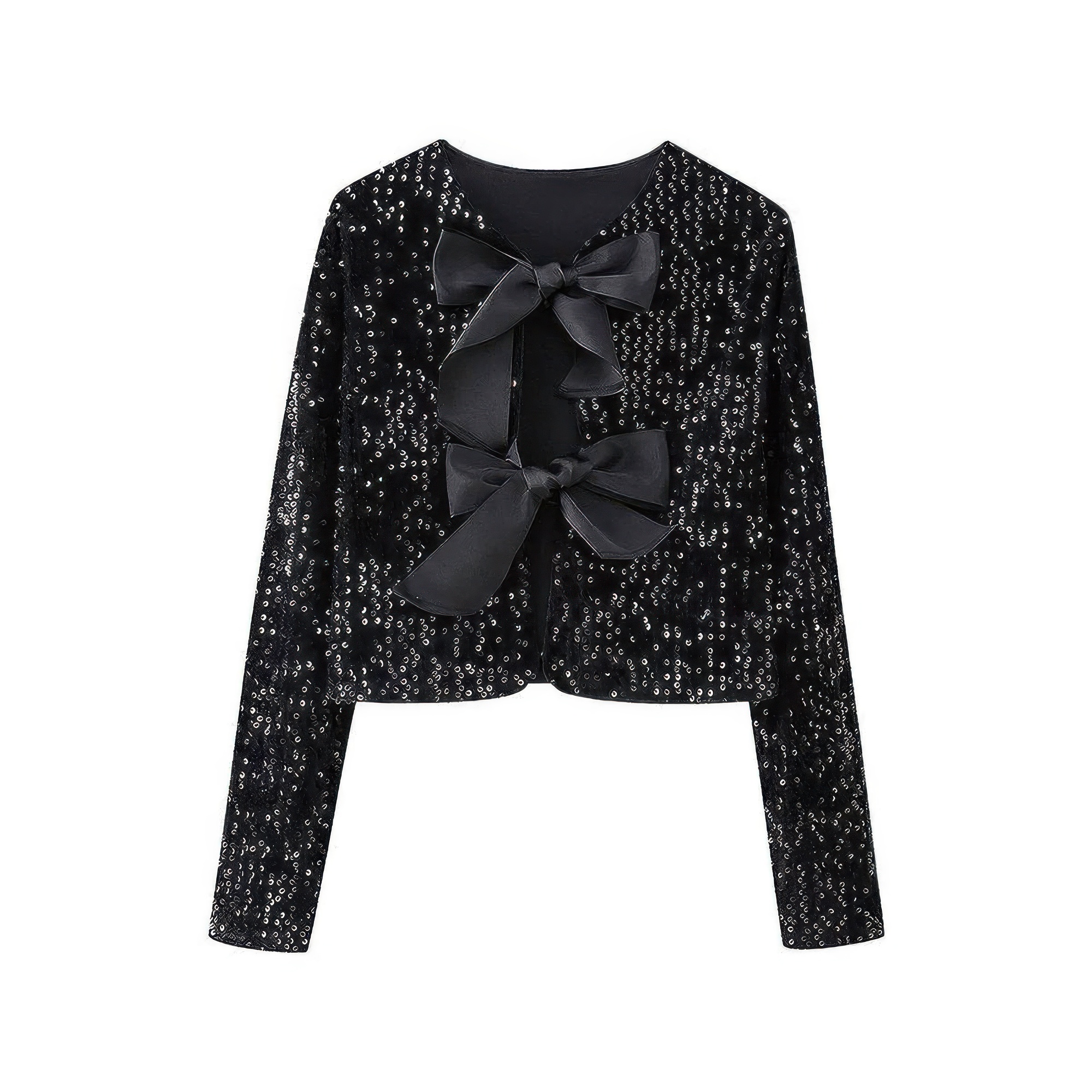 Shine bright with the V Neck Sparkly Bolero Cropped Tie Front Jacket. This versatile piece can be worn two ways — front or back — offering stylish flexibility for any occasion. Crafted from a soft, stretchy blend of polyester and elastane, it hugs comfortably while adding a touch of shimmer to your look. Perfect for layering over dresses or camisoles, it’s your go-to for parties, evenings out, or festive gatherings.