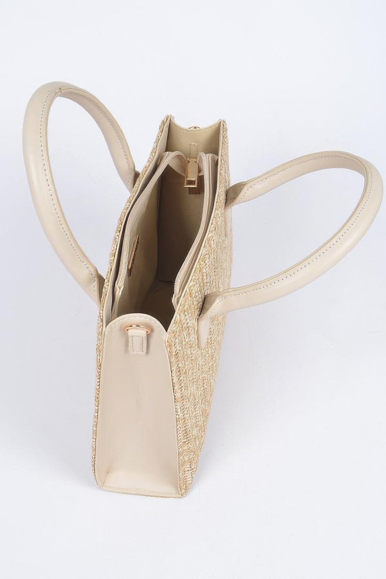 Effortlessly chic, the Vegan Faux Straw Mini Tote Bag blends seasonal texture with everyday function. Designed with a structured mini shape and soft straw-inspired finish, this bag brings breezy elegance to spring and summer looks. Its compact interior fits your essentials, while the top handles offer a polished, feminine touch. Ideal for casual brunches, beach days, or weekend outings.