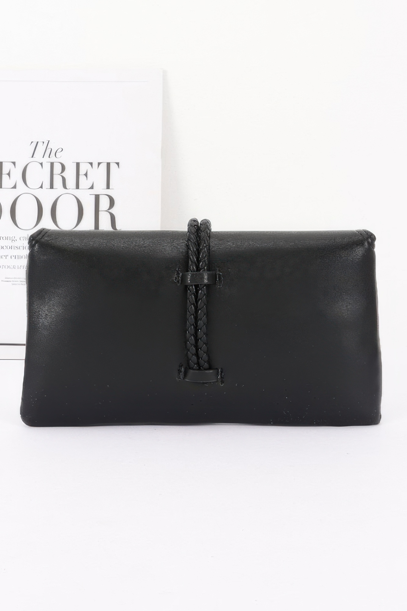 Sleek and sophisticated, the Vegan Leather Envelope Clutch Bag brings timeless polish to your evening wardrobe. Its clean envelope silhouette is enhanced by a braided knot detail and a gleaming gold-tone accent, adding subtle drama. Made from smooth vegan leather, it offers enough room for your evening essentials while maintaining a slim, elegant profile. Whether paired with a cocktail dress or a tailored suit, this clutch provides a refined finish to your formalwear.
