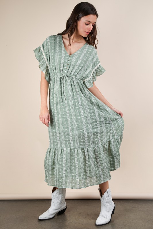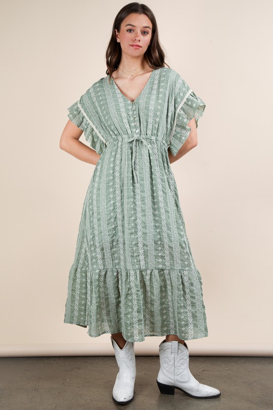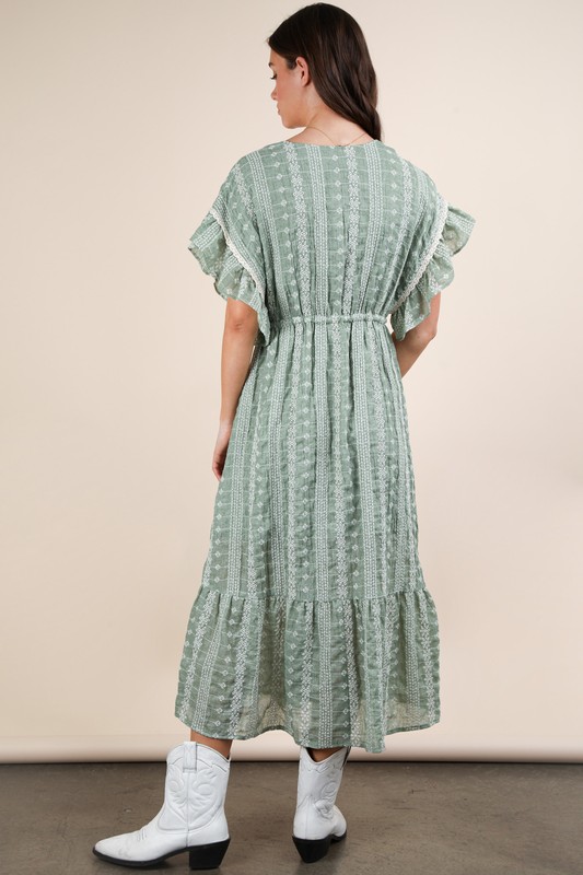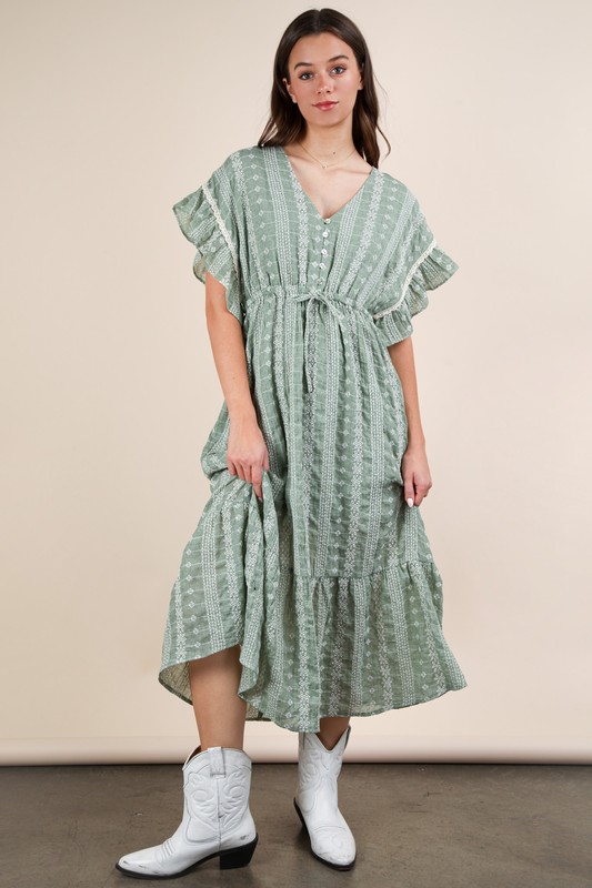 VERY J Embroidered Boho Ruffled Midi Dress