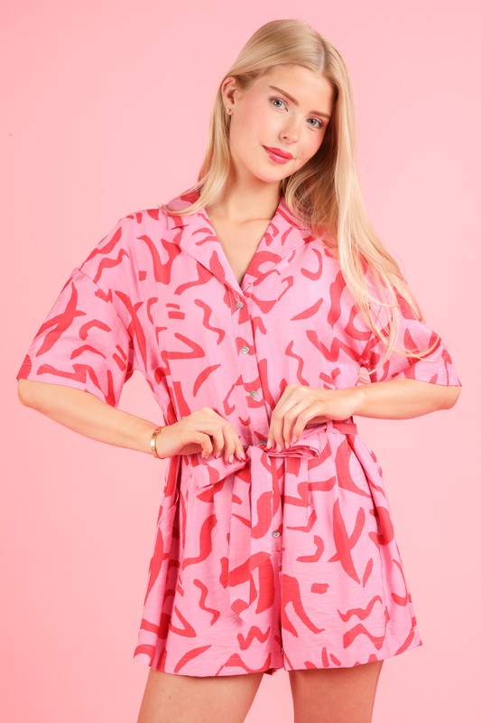 VERY J Oversized Printed Button Down Resort Romper