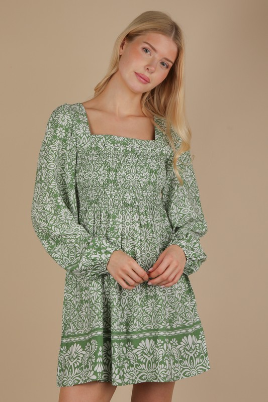 The Printed Smocked Chest Boho Mini Dress is a trendy and bohemian-inspired piece perfect for a summer wardrobe. Featuring a smocked chest detail for a flattering fit and a fun print, this mini dress exudes a laid-back and stylish vibe. Pair it with sandals and layered jewelry for a relaxed boho look, ideal for picnics, festivals, or any casual outing.
