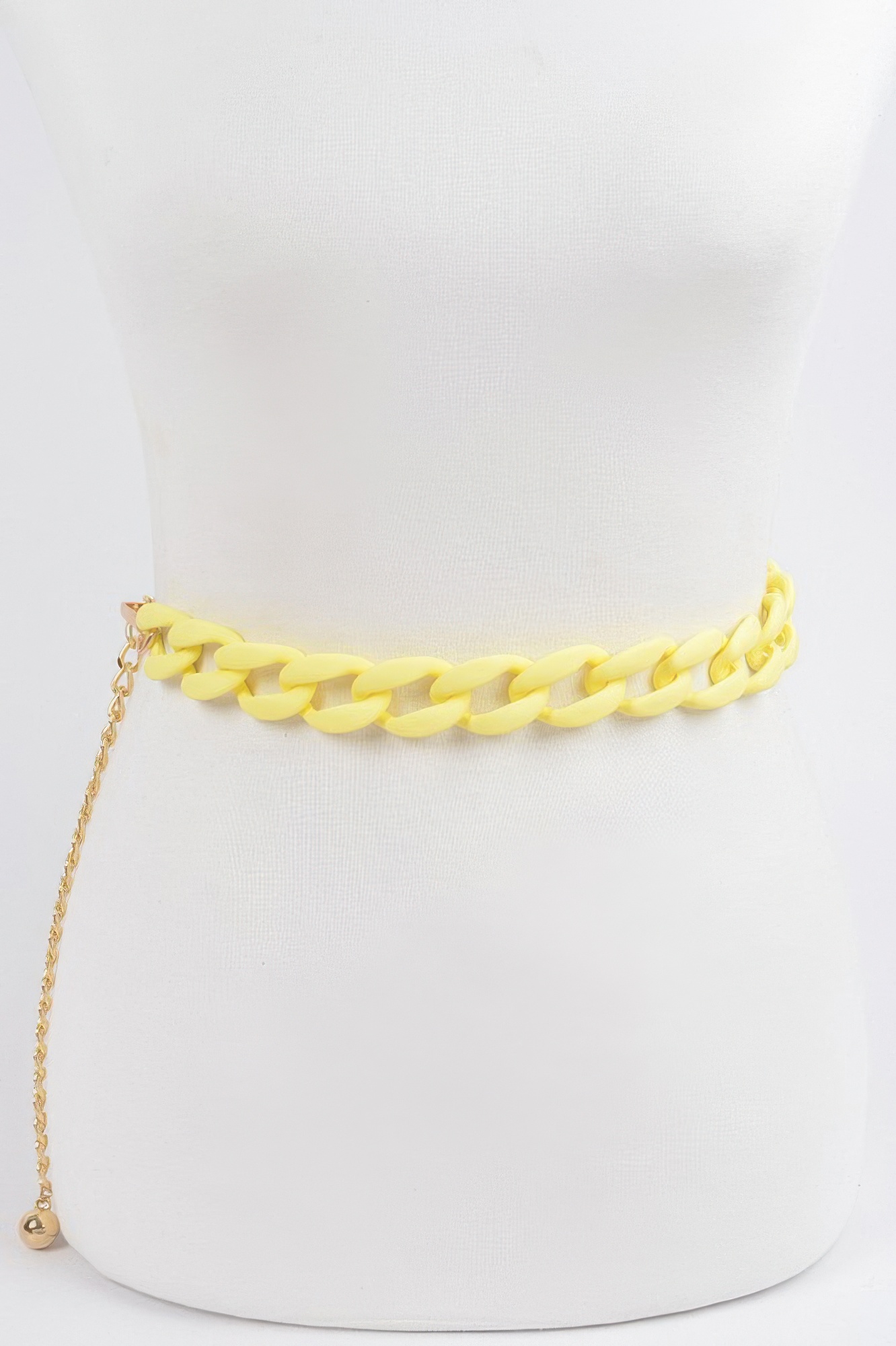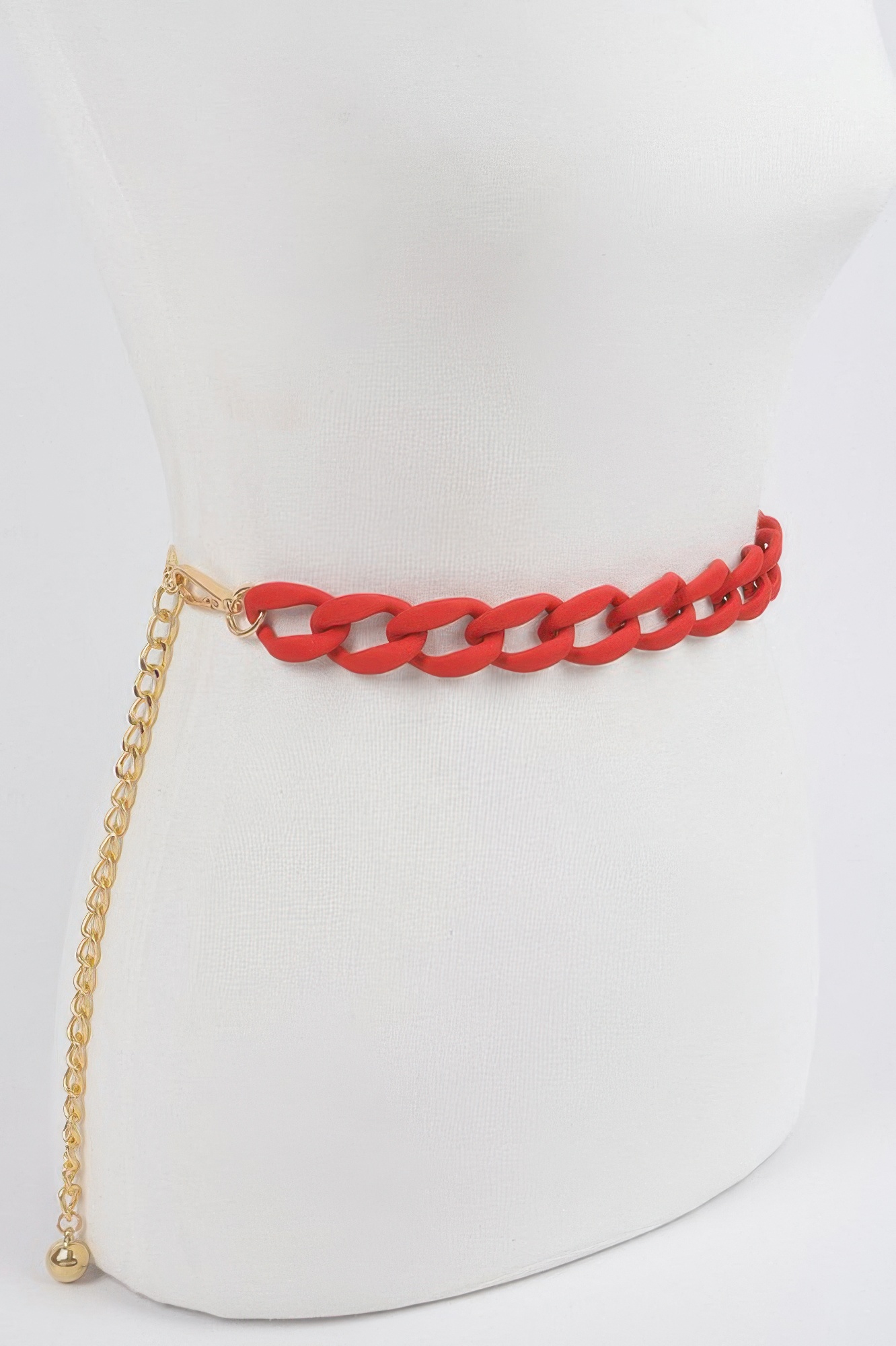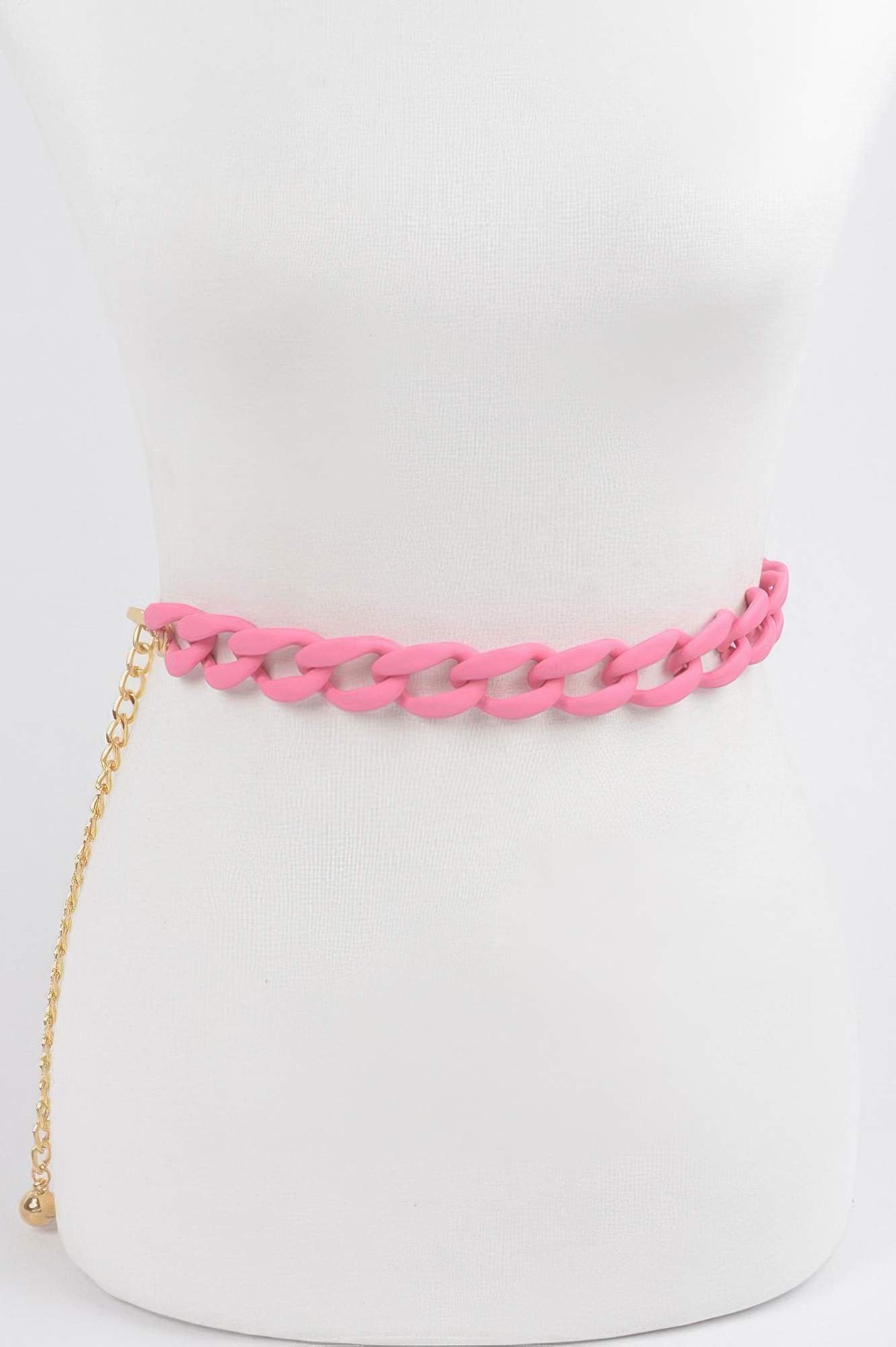 This vivid color chain belt features a bold chain design enhanced with vibrant color accents for a modern and eye-catching look. The lightweight structure allows for easy styling, while the adjustable length offers flexibility. Its layered appearance adds dimension to any outfit. Designed to stand out, it pairs well with both casual and statement looks. A unique accessory, it adds a playful yet stylish touch.