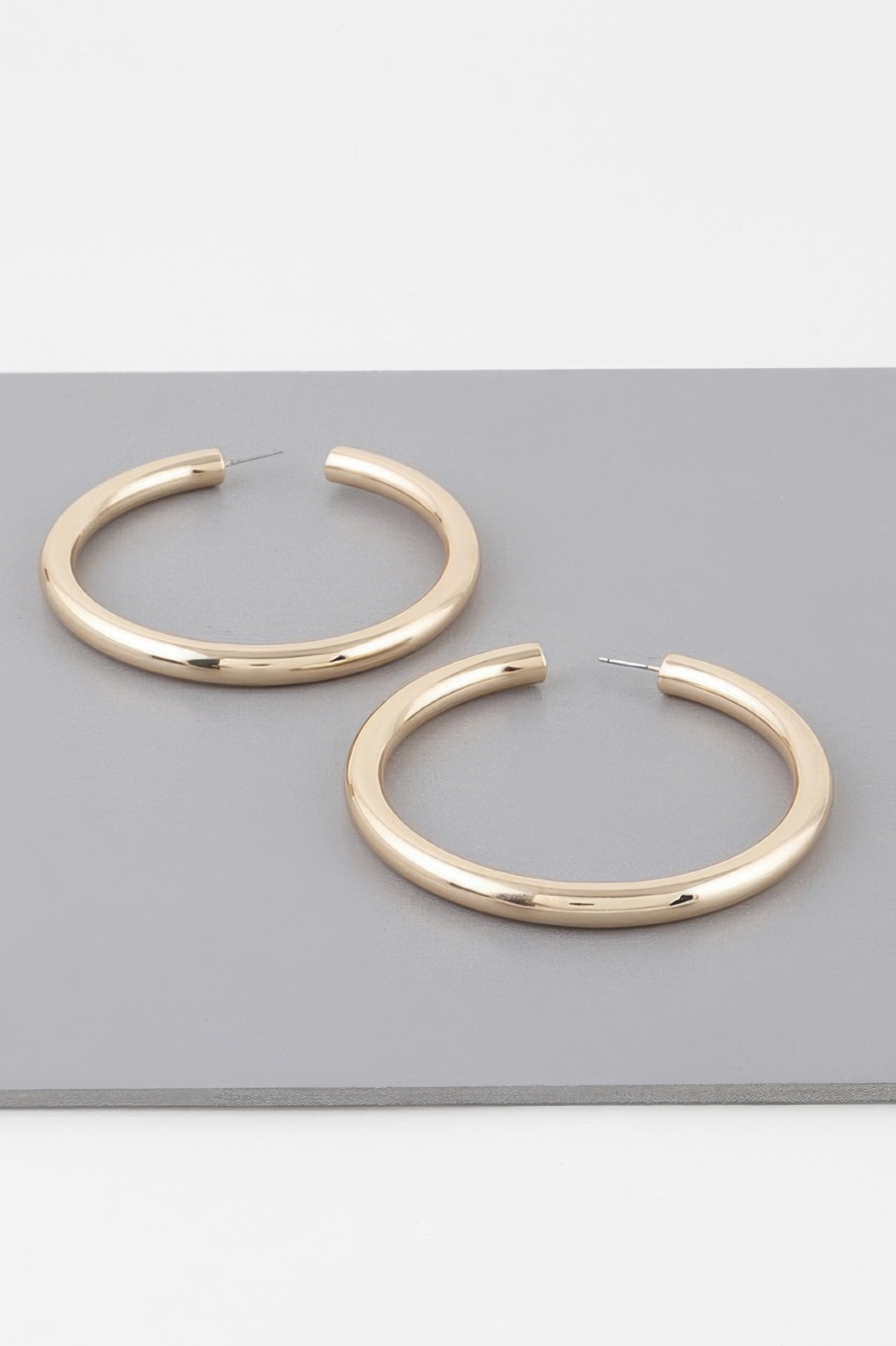 The Wide Shiny Hoop Earrings offer a bold take on a timeless jewelry staple. Featuring a wide polished surface, these hoops reflect light beautifully to create a sleek and modern appearance. The classic circular shape ensures they remain versatile and easy to style with a wide range of outfits. Their bold width adds statement appeal while still maintaining an elegant silhouette. Lightweight construction allows comfortable wear throughout the day. These earrings can easily transition from casual daytime looks to evening styling. With their clean design and radiant shine, they are a must have addition to any jewelry collection.