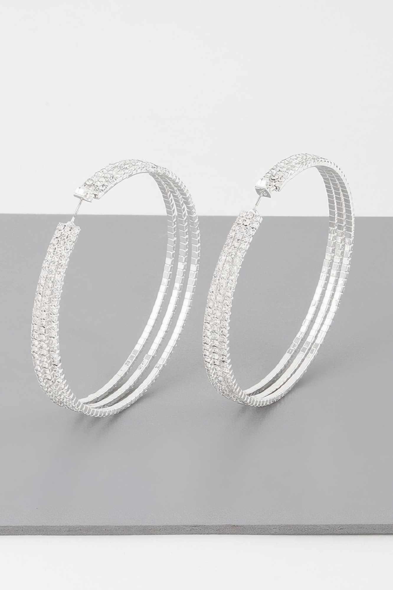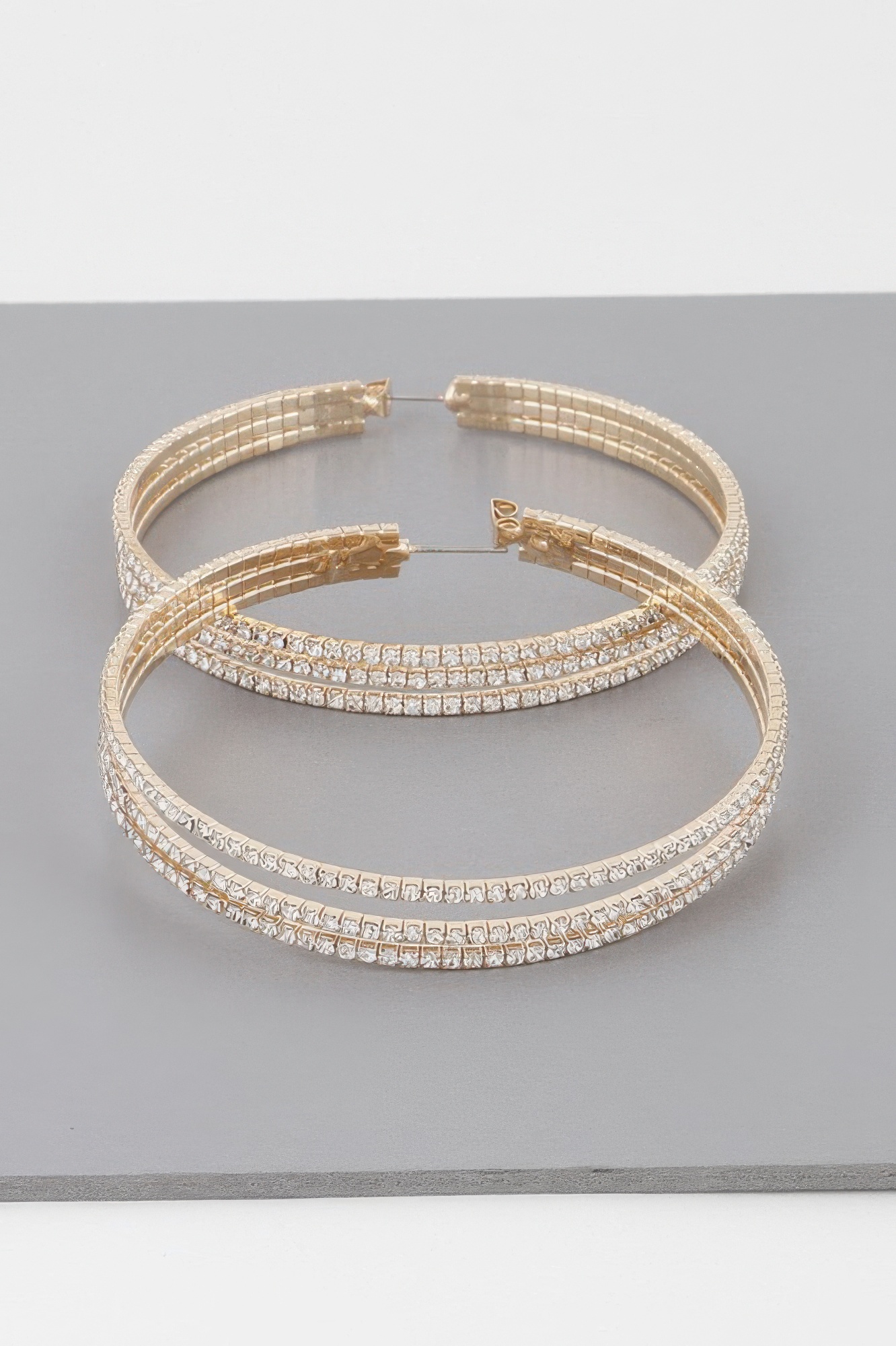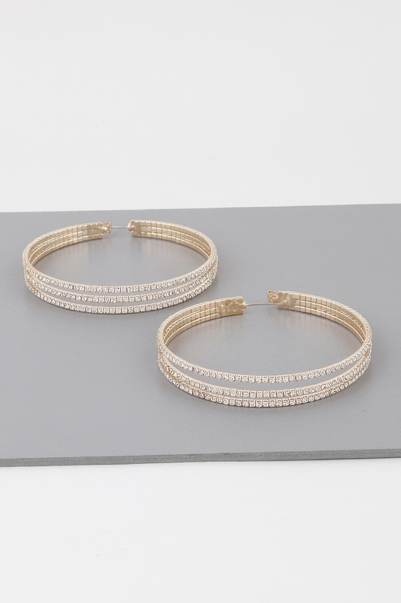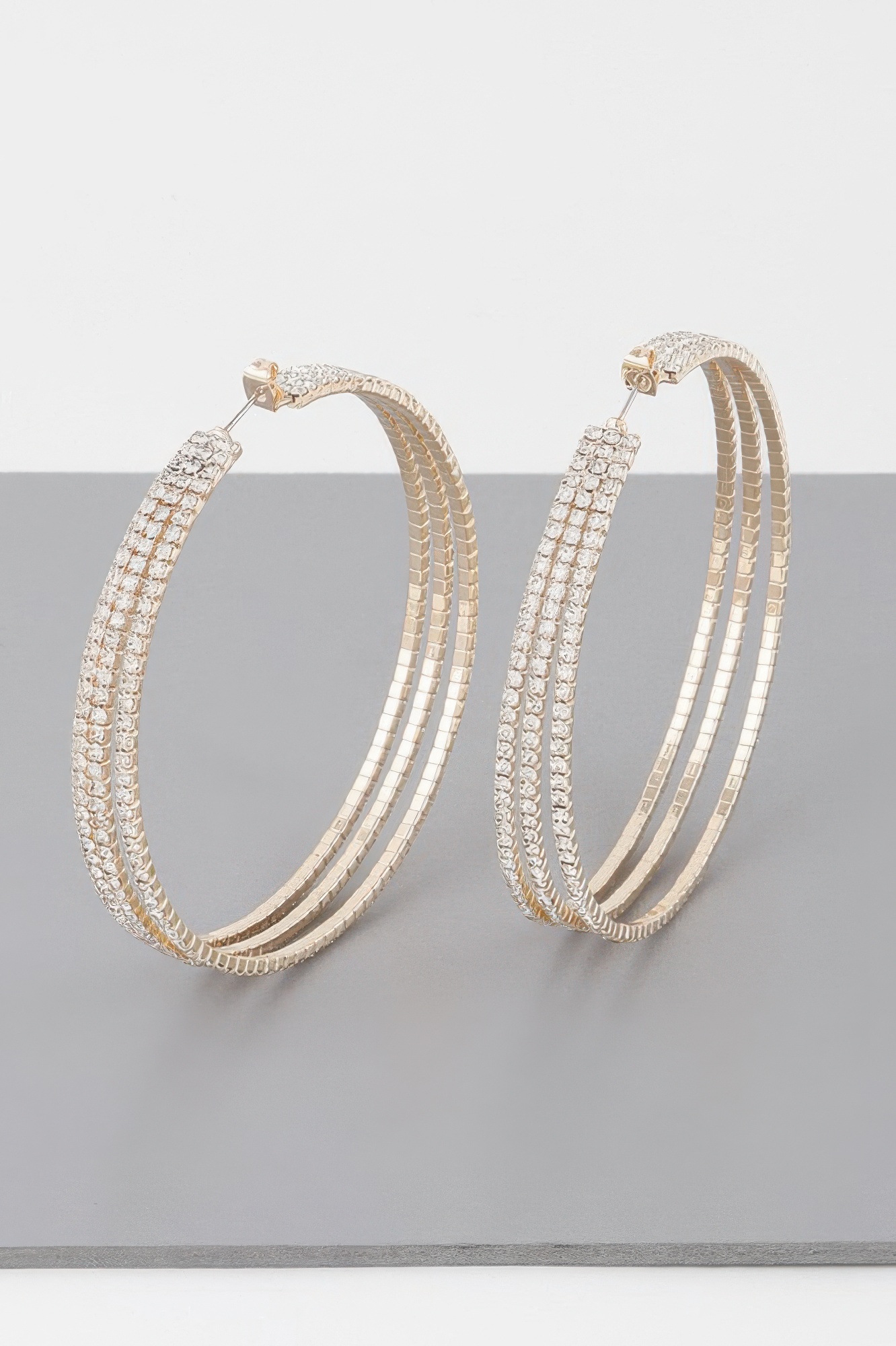 Make a bold statement with these wide triple jewel hoop earrings, designed to stand out with layered brilliance. The wide hoop silhouette is enhanced with multiple jewel accents for a striking effect. Their structured shape adds definition while maintaining a refined finish. Perfect for elevating evening or statement looks, they offer both style and impact. A standout accessory, they bring confident elegance to any outfit.
