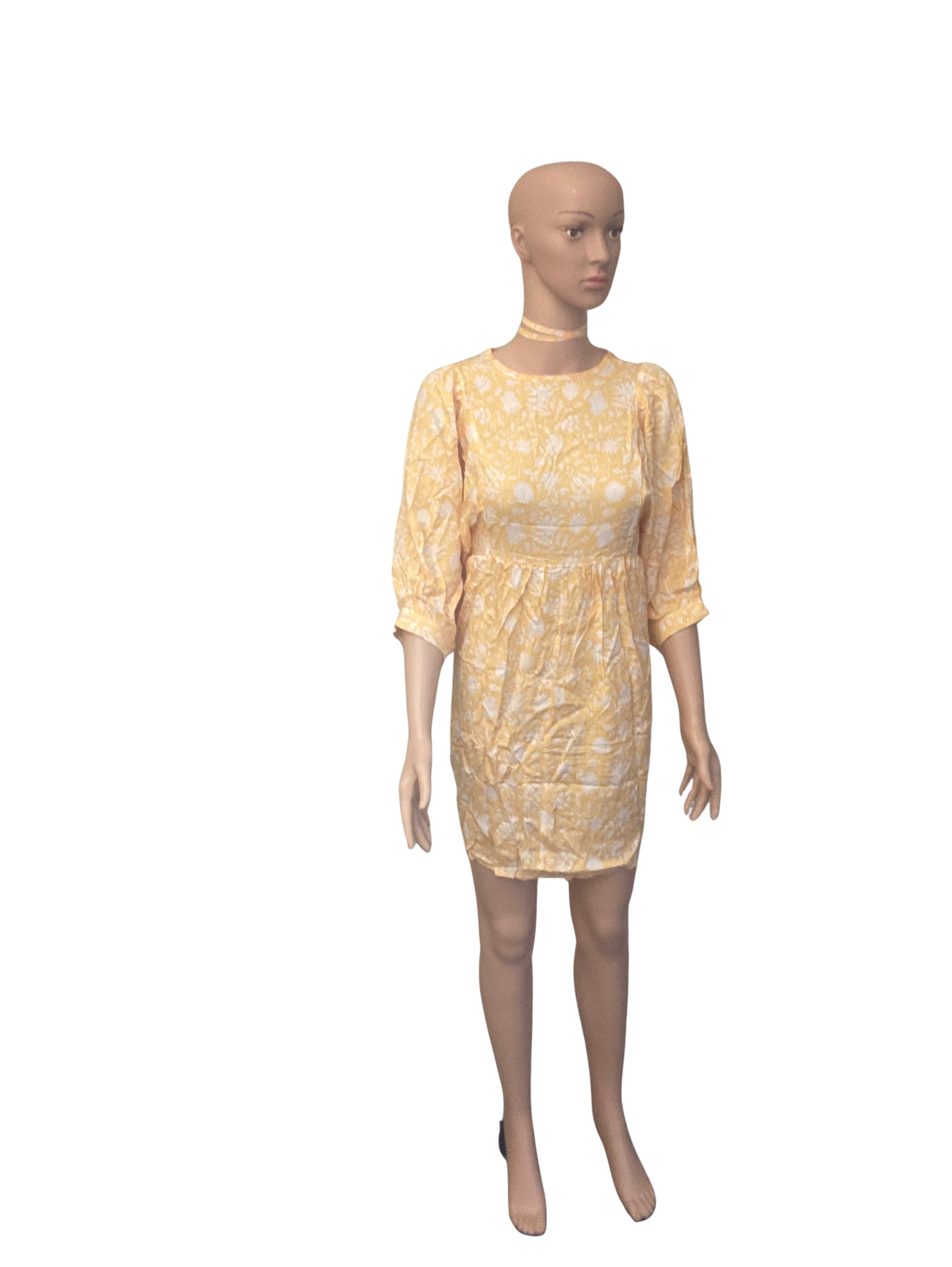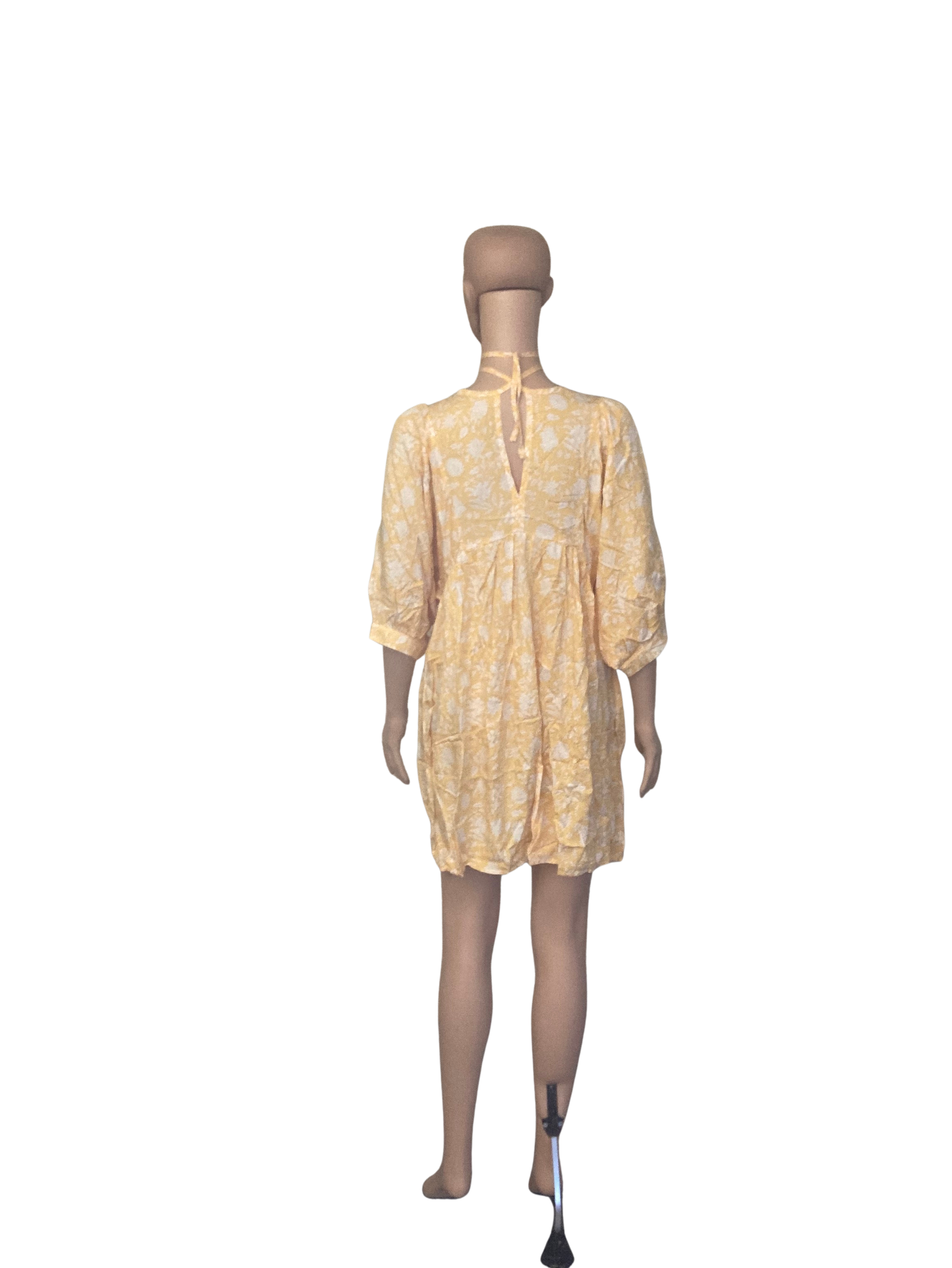 Made from flowy material, it offers a relaxed and comfortable fit. The dress is available in size small. The floral lace-up design adds a touch of elegance and charm.