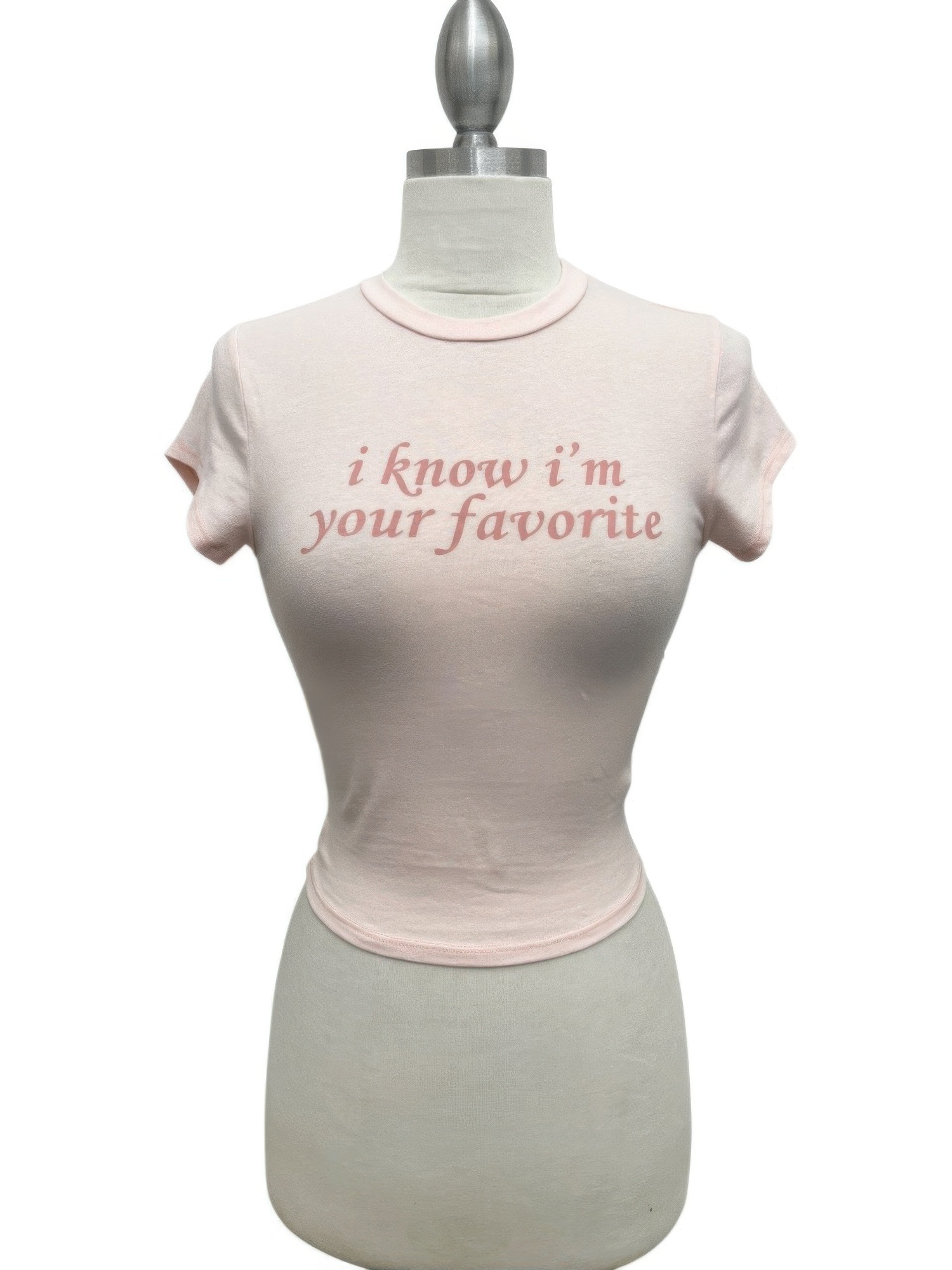 Your Favorite Baby Tee is designed to deliver effortless style with a flattering, close-to-body fit. Crafted from a soft cotton blend with added stretch, it offers breathable comfort and flexible movement throughout the day. The fitted silhouette and cropped length create a modern shape that pairs seamlessly with high-waisted denim or skirts. A subtle graphic print adds a playful, feminine touch while keeping the look versatile and easy to wear. Lightweight and comfortable, it’s ideal for layering or styling on its own. This everyday essential brings polished simplicity to your casual wardrobe.