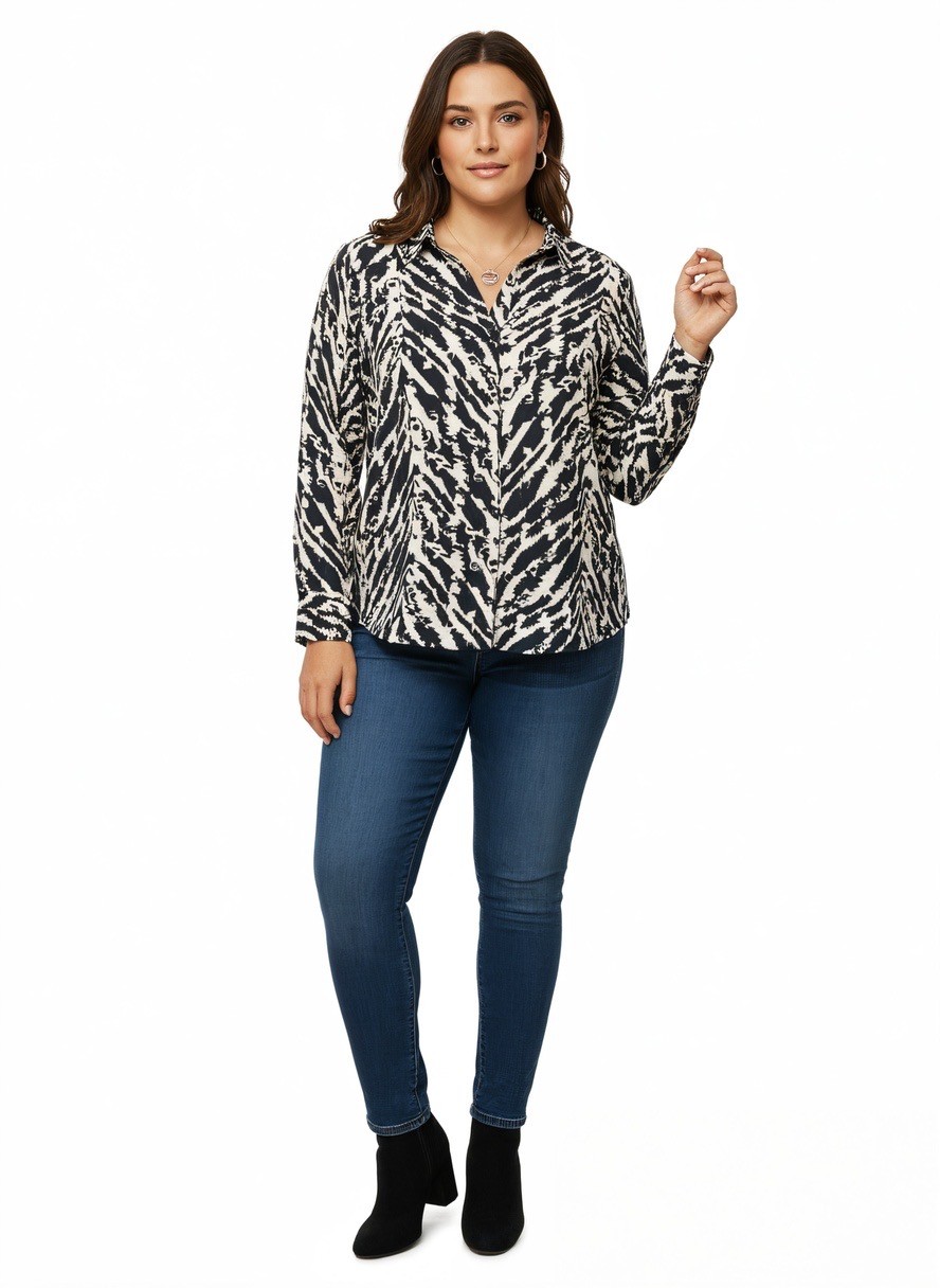 Make a striking statement with this zebra print button-up shirt, designed to bring bold style to any outfit. Featuring a classic collar and full button-front closure, it offers a polished look with effortless versatility. The eye-catching zebra print adds a modern edge, easily elevating both casual and refined ensembles. Its relaxed silhouette drapes smoothly, providing comfort without feeling clingy. Ideal for pairing with denim, tailored trousers, or skirts, it transitions seamlessly from day to evening. Whether styled for work, dinners, or weekend plans, this shirt delivers confident, standout appeal.
