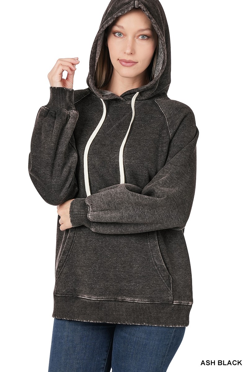 Achieve a laid-back and trendy look with this Acid Wash Fleece Hoodie featuring a Drawstring. The acid wash finish adds a cool and vintage vibe to this comfortable hoodie style. The drawstring detail adds a functional element, allowing you to adjust the hood for a personalized fit. Made with soft fleece fabric, this hoodie is perfect for casual outings or cozy nights in. Stay stylish and comfortable in this versatile wardrobe essential.