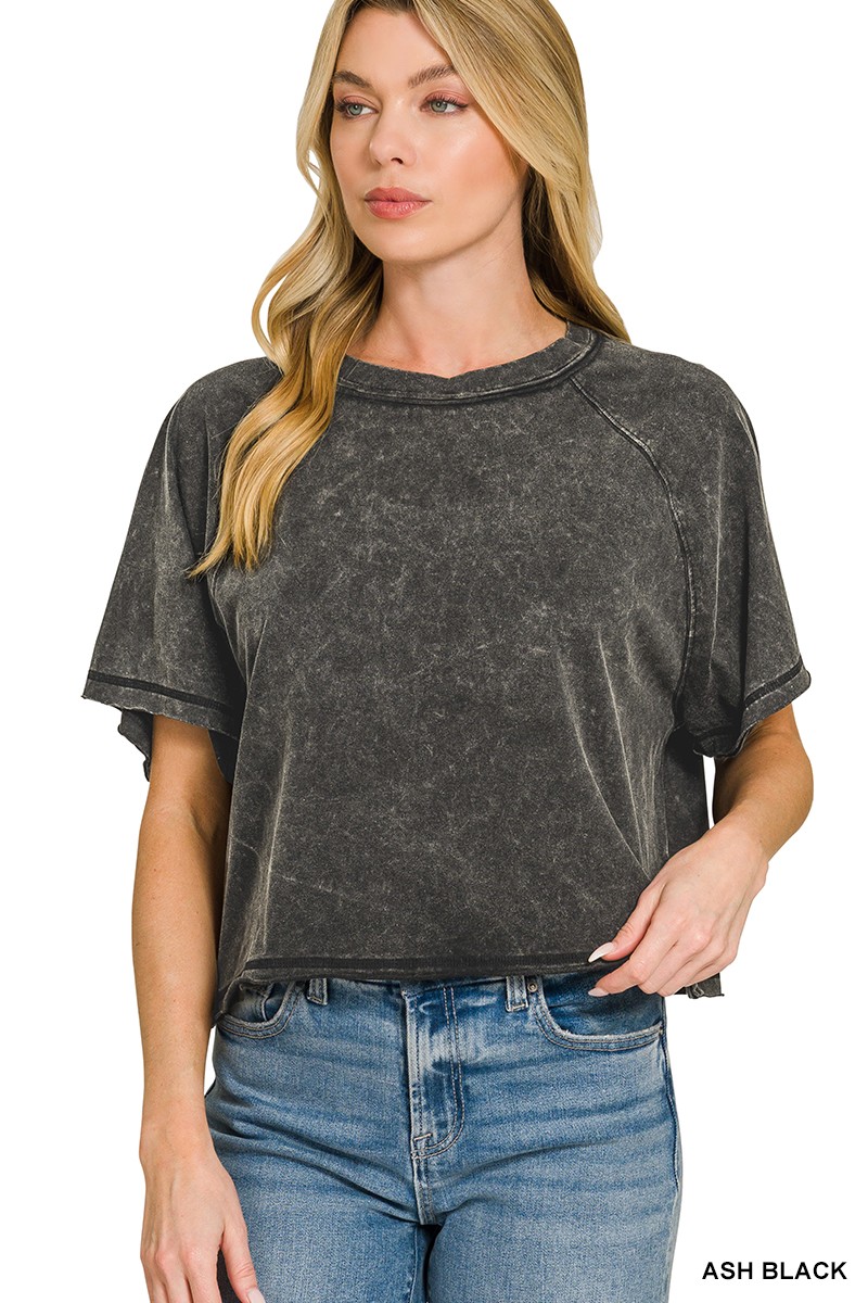 This vintage wash cropped T-shirt is a stylish and comfortable addition to any wardrobe. Made from a soft and breathable cotton blend, it features a unique vintage wash that gives it a worn-in look. The cropped length and raw hem add a fashion touch, while the raglan sleeves provide a sporty feel. Perfect for casual wear, this T-shirt can be paired with jeans, shorts, or skirts for a variety of looks. Its relaxed fit ensures all-day comfort, making it ideal for everyday activities. The durable construction ensures long-lasting wear, and it's easy to care for, making it a practical choice for busy individuals.