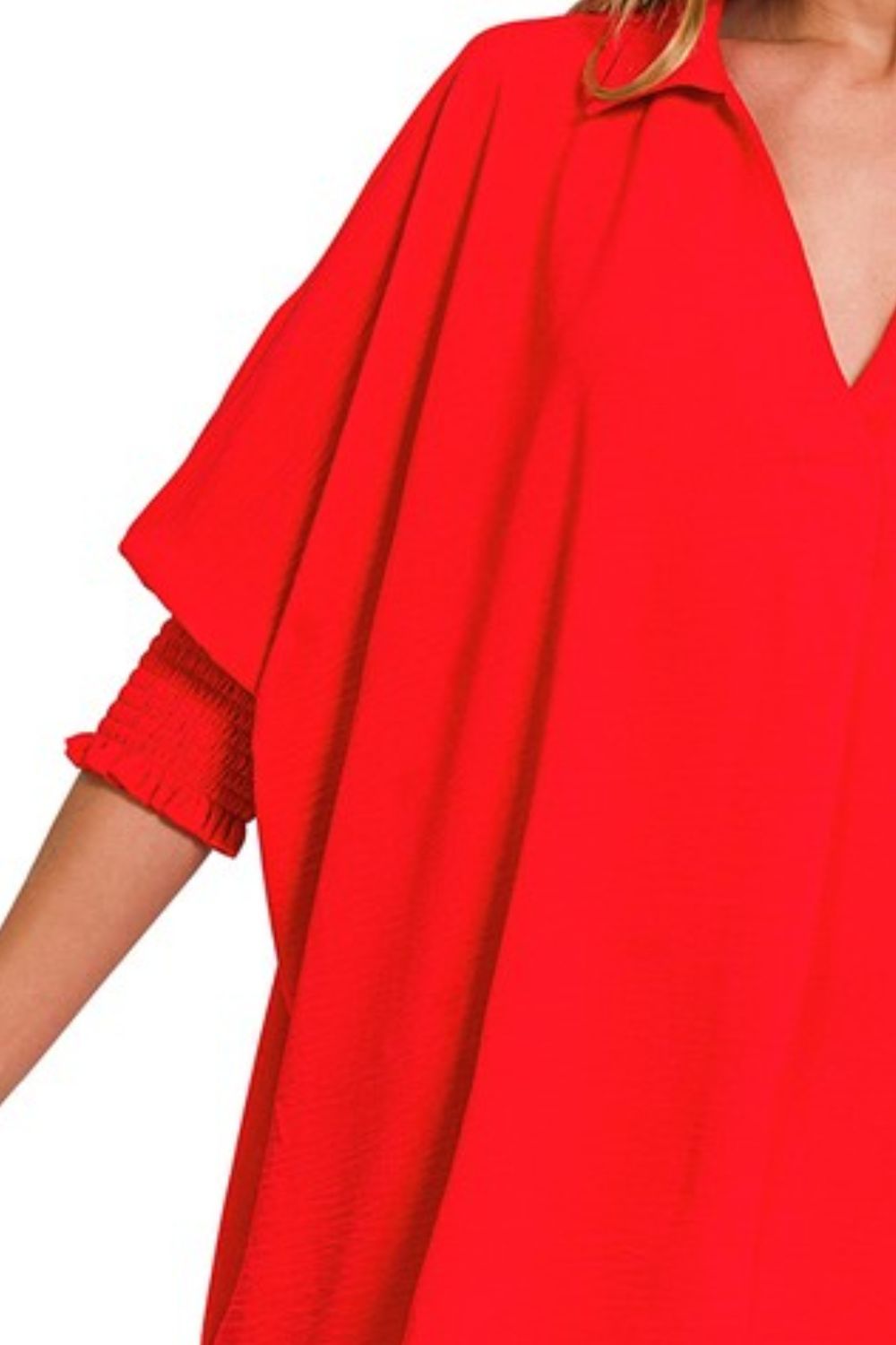 Zenana Airflow Collar Tee with Smocked Sleeve Band Top