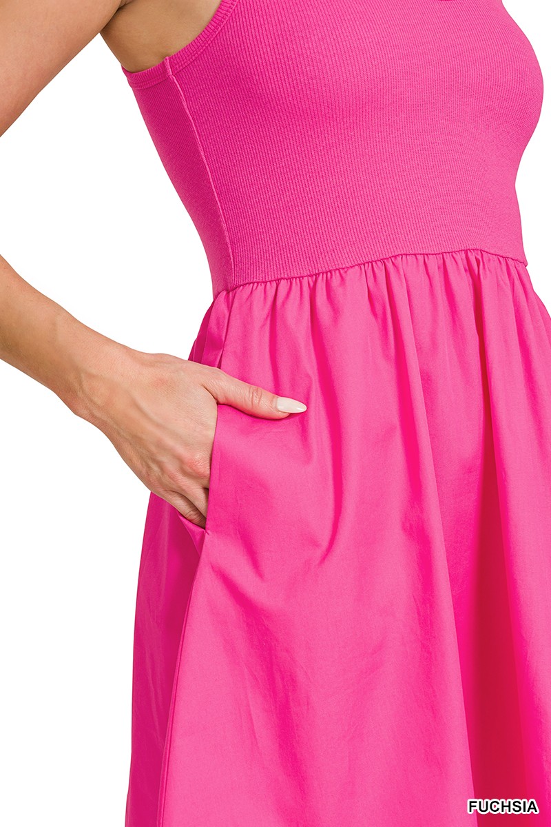 Zenana Combined Knit & Woven Midi Dress
