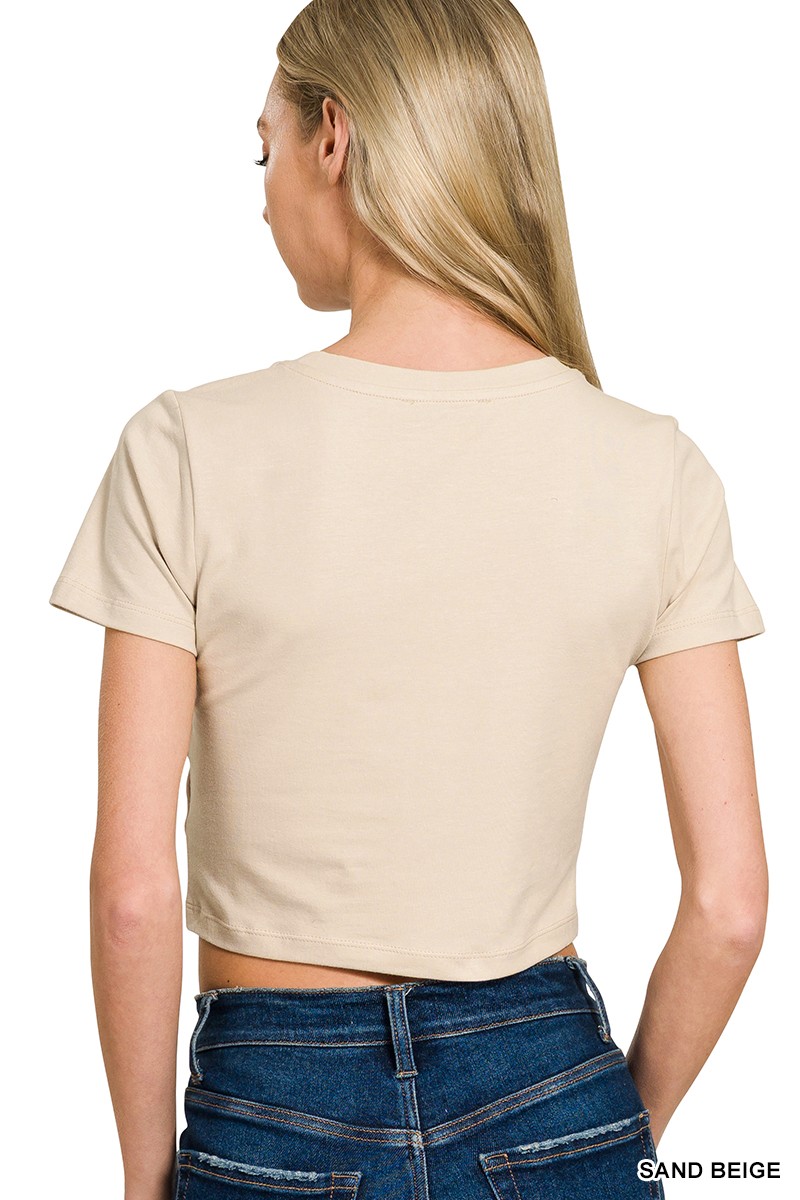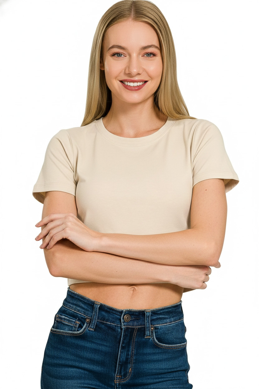 The Cotton Short Sleeve Round Neck Cropped Top is a versatile and essential piece for your wardrobe. Made from soft cotton fabric, this top offers comfort and breathability for everyday wear. The round neck design adds a classic touch, perfect for pairing with various bottoms. The cropped length gives a trendy and modern look, ideal for casual outings or layering with high-waisted bottoms. Stay stylish and comfortable with the Cotton Short Sleeve Round Neck Cropped Top as a versatile staple in your closet.