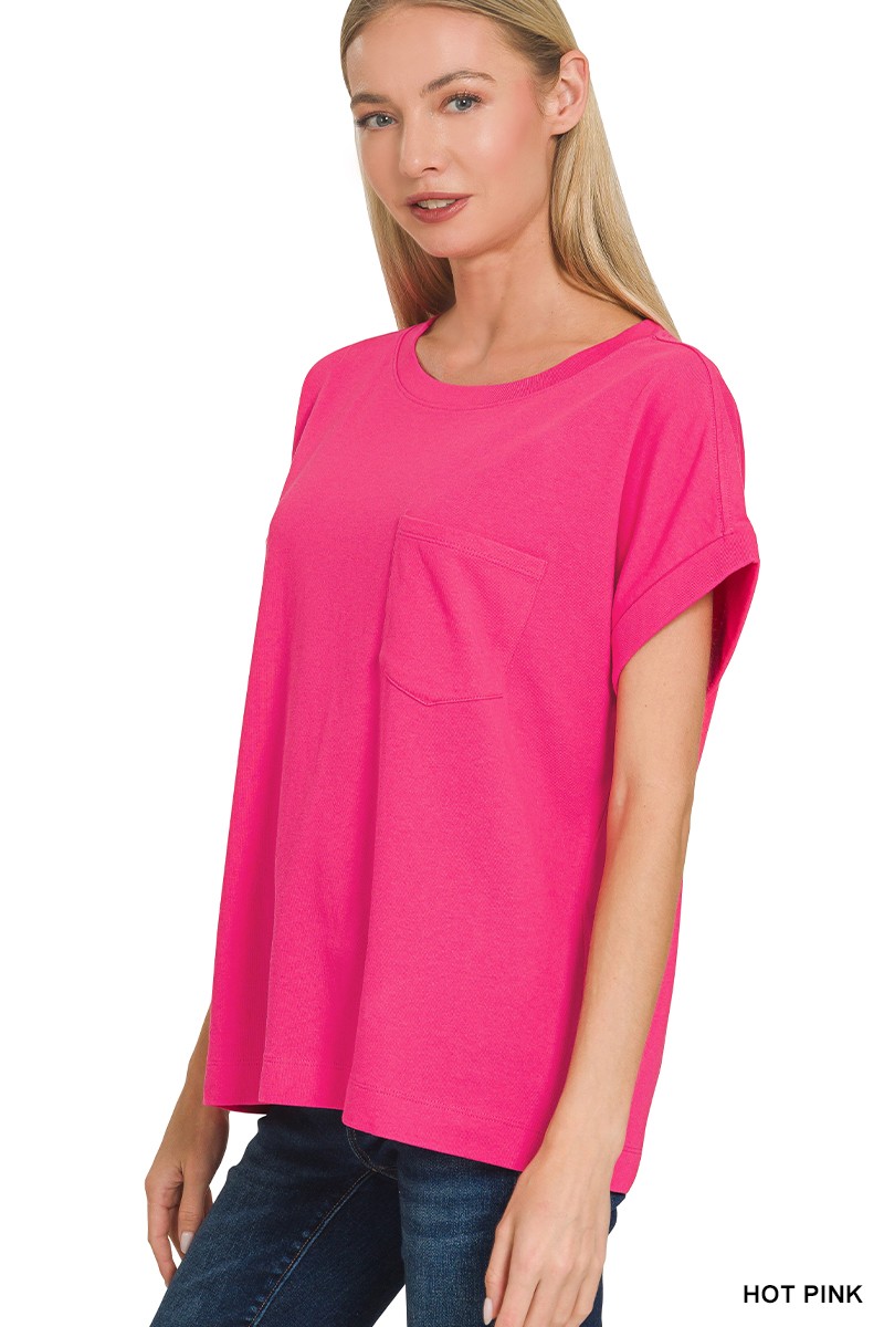 The Cuffed Front Pocket Short Sleeve Tee is a casual and practical piece for everyday wear. With its cuffed sleeves and front pocket detail, it combines style and functionality effortlessly. This tee is perfect for a relaxed and laid-back look, ideal for pairing with your favorite jeans or shorts. The front pocket adds a subtle detail, while the short sleeves make it perfect for warm weather. Stay comfortable and stylish with this versatile and easy-to-wear tee.
