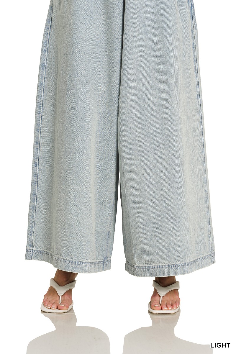 The Denim Light Washed Wide Leg Overalls are a stylish and versatile addition to your wardrobe. Made from light washed denim, these overalls have a relaxed and casual look. The wide leg design adds a trendy and modern touch to the classic overall style. With adjustable straps and multiple pockets, these overalls are both functional and fashionable. Perfect for a laid-back and effortless outfit, these overalls can be paired with your favorite tops for a cool and casual ensemble.