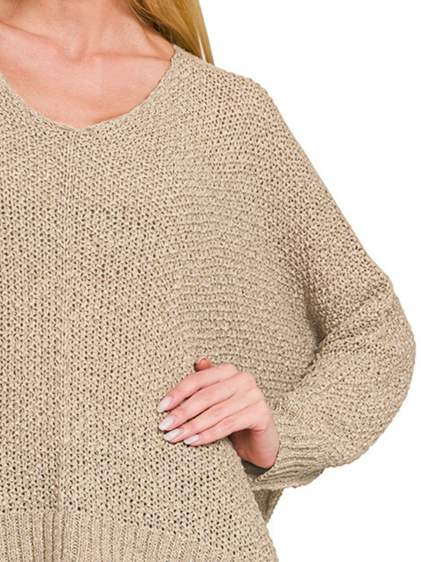 Add a touch of effortless sophistication to your wardrobe with this dolman sleeve V-neck sweater. The dolman sleeves create a relaxed and slouchy silhouette, perfect for a casual and laid-back look. The V-neckline offers a flattering and feminine touch to the design. This sweater is versatile and can be easily dressed up or down for various occasions. Pair it with jeans for a relaxed daytime outfit or with trousers for a more polished ensemble. Elevate your style with this chic and comfortable dolman sleeve V-neck sweater.