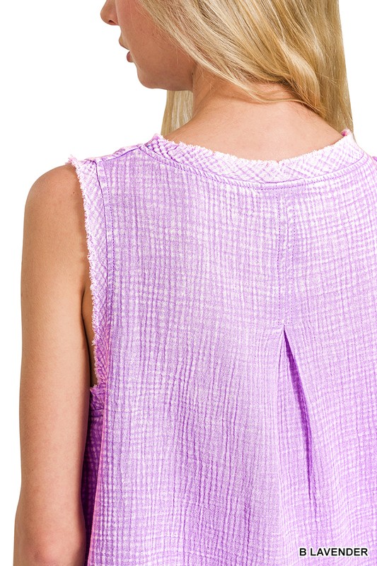 The Double Gauze Raw Edge Acid Washed Tank Top is a trendy and edgy piece that combines comfort with style. Made from double gauze fabric, it offers a lightweight and breathable feel. The raw edge detailing adds a relaxed and casual touch to the tank top. With an acid washed finish, this top has a unique and vintage-inspired look. Perfect for layering under a jacket or wearing on its own, the Double Gauze Raw Edge Acid Washed Tank Top is versatile and easy to style for a cool and effortless outfit. Stay fashionable and comfortable with this stylish tank top for a casual and on-trend look.