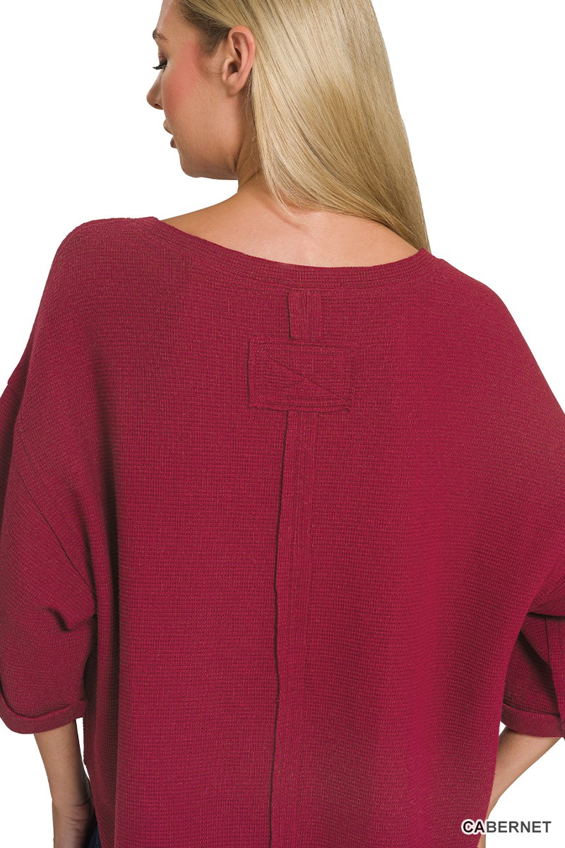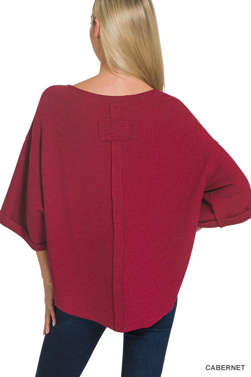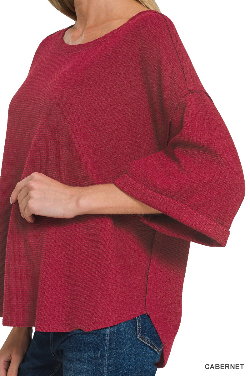 This double knit top features exposed seams and a stylish curved hem, adding a modern twist to a classic design. The double knit fabric offers comfort and durability, making it perfect for everyday wear. The exposed seams give the top a unique and edgy look, showcasing attention to detail. The curved hem adds a flattering silhouette and a touch of sophistication to the overall style. Pair this versatile top with jeans or slacks for a chic and effortless outfit.