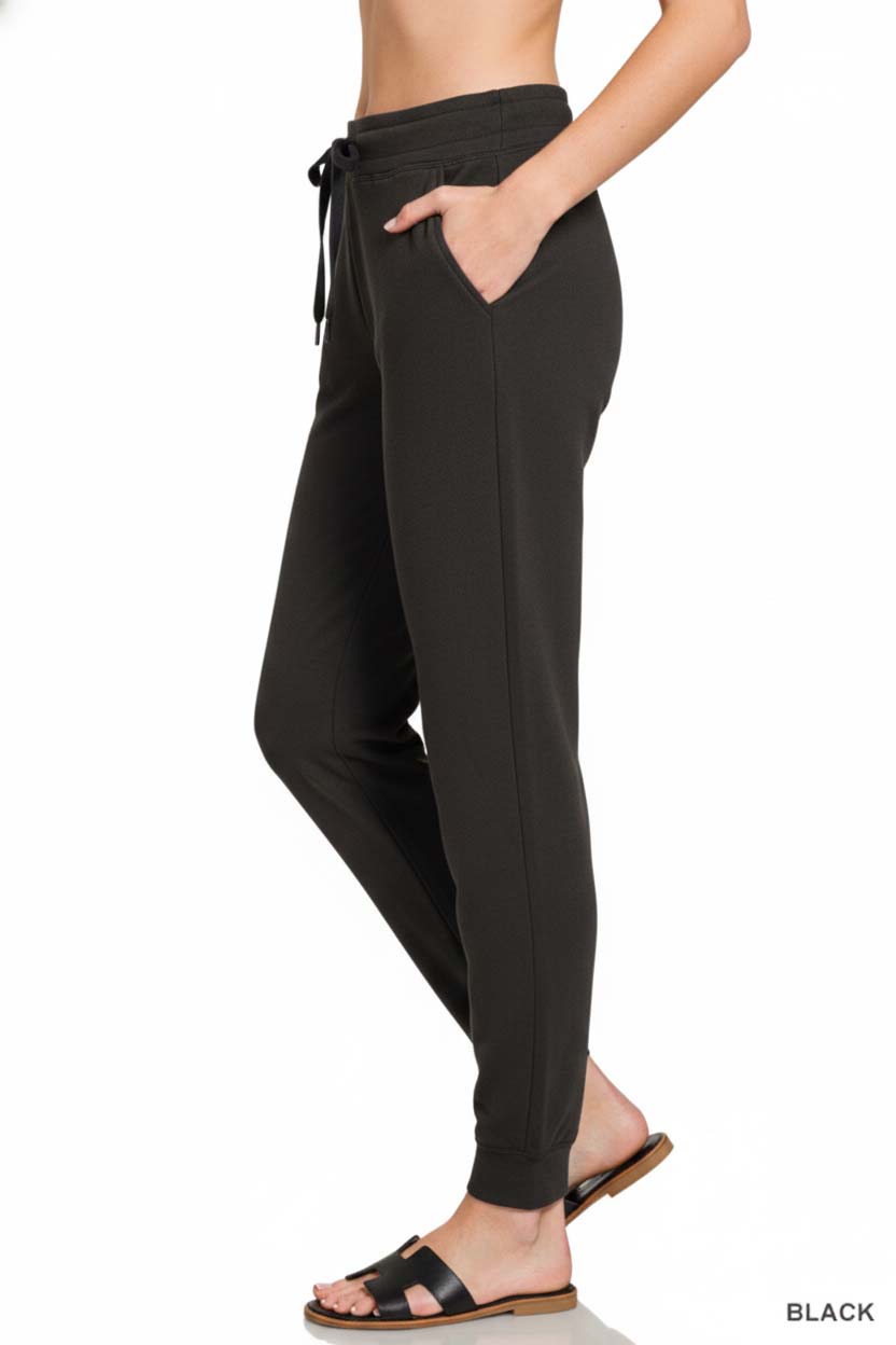 These Drawstring Scuba Joggers with Pockets are a must-have for a comfortable and stylish athleisure look. The drawstring waist allows for a customizable fit, while the pockets add functionality and convenience. Made from scuba fabric, these joggers offer a sleek and modern appearance. Perfect for running errands or lounging at home, these joggers blend fashion and functionality effortlessly. Elevate your casual wardrobe with these versatile and trendy joggers.