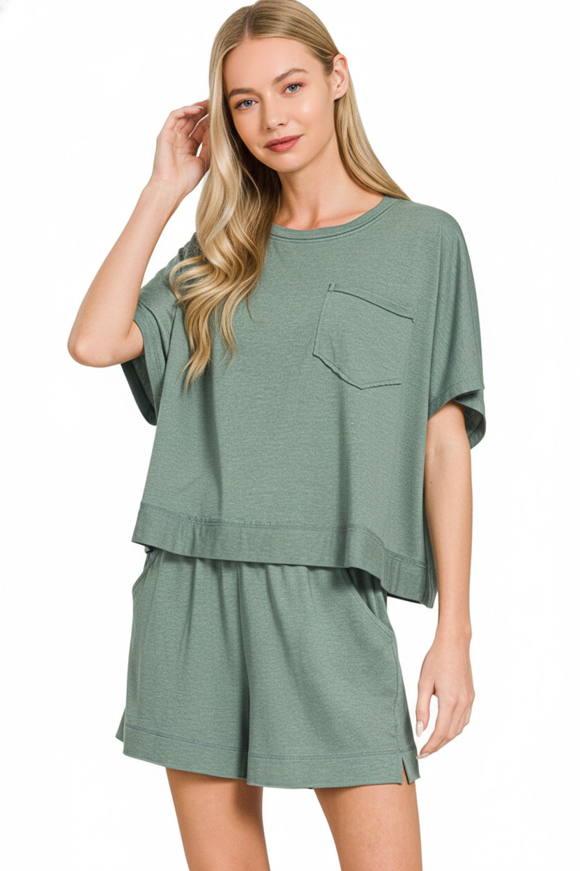 Zenana Exposed Seam Boxy Top & Shorts Set