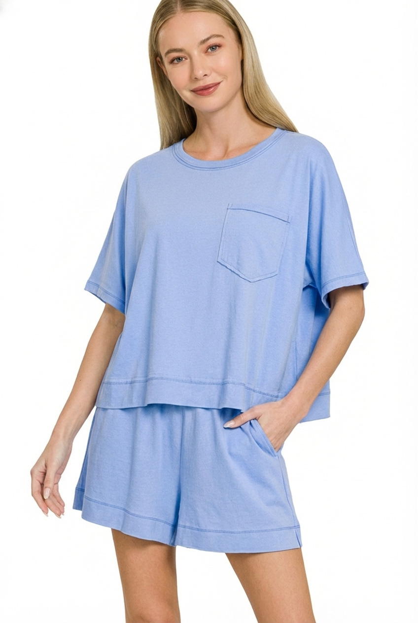 Zenana Exposed Seam Boxy Top & Shorts Set