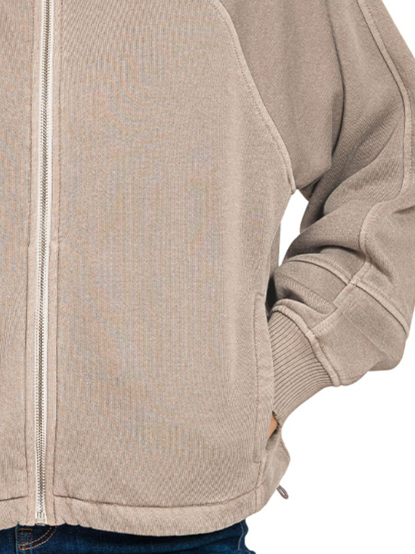 Stay cozy and stylish in this fleece pigment dye zip-up hoodie with pockets. The soft fleece material ensures warmth and comfort, perfect for chilly days. The pigment dye adds a unique and fashionable touch, giving the hoodie a trendy vintage look. With convenient pockets for storage and warmth, this hoodie is both practical and stylish. Elevate your casual wardrobe with this versatile and effortlessly cool Fleece Pigment Dye Zip-Up Hoodie with Pockets.