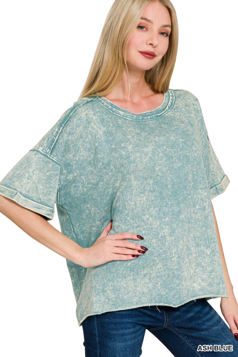 This French Terry acid washed t-shirt offers a trendy and edgy take on the classic t-shirt style. The acid wash treatment gives the shirt a unique and vintage-inspired look. Made from French Terry fabric, it provides a soft and comfortable feel against the skin. Perfect for casual outings or lounging at home, this t-shirt combines style and comfort effortlessly. Embrace a cool and relaxed aesthetic with this on-trend acid washed t-shirt.