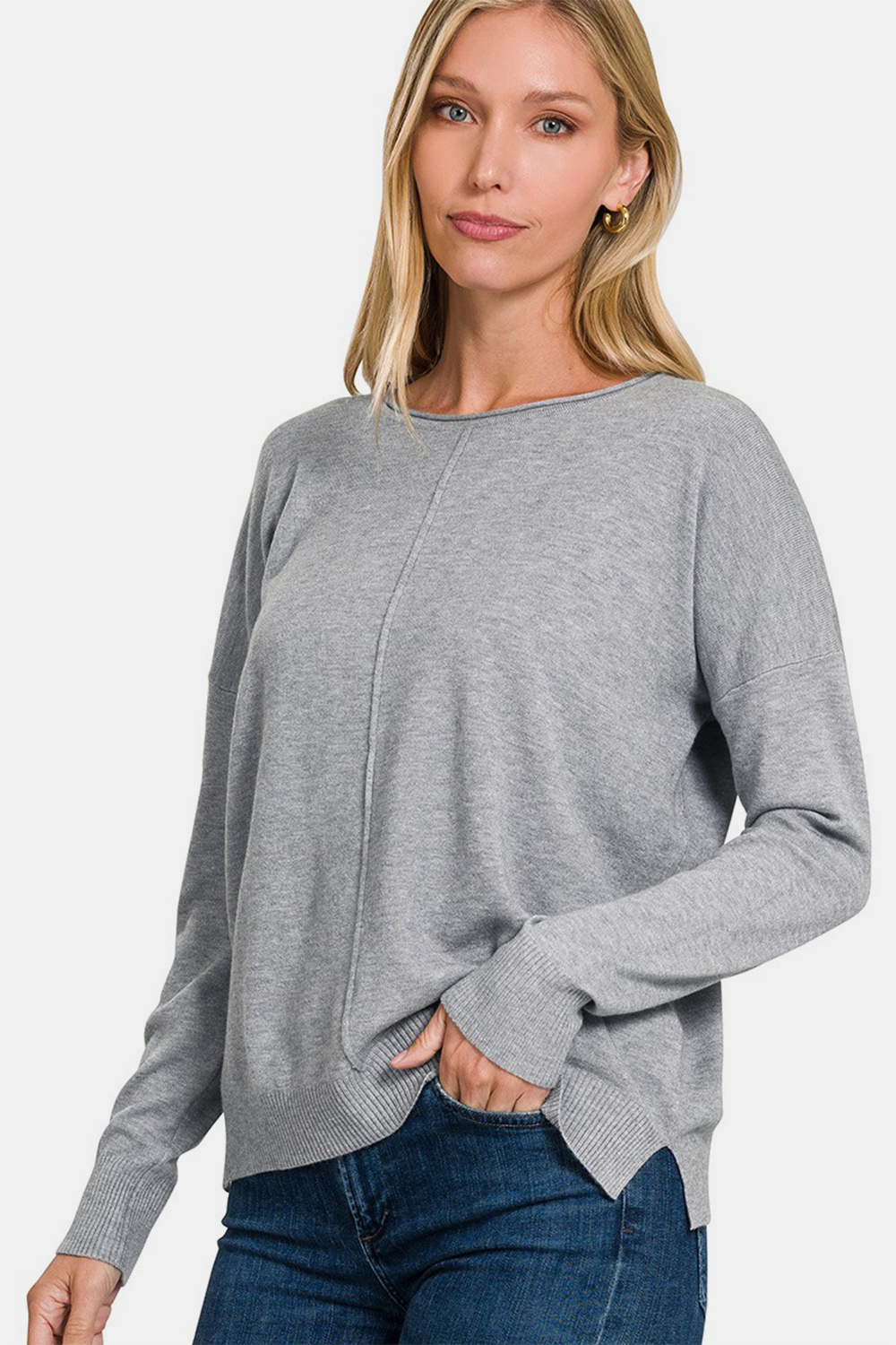 The Front Seam Round Neck Sweater is a classic and versatile piece for your wardrobe. With its front seam detailing and round neck design, this sweater offers a simple yet stylish look. Perfect for layering or wearing on its own, it is a timeless addition that can be easily dressed up or down for any occasion.
