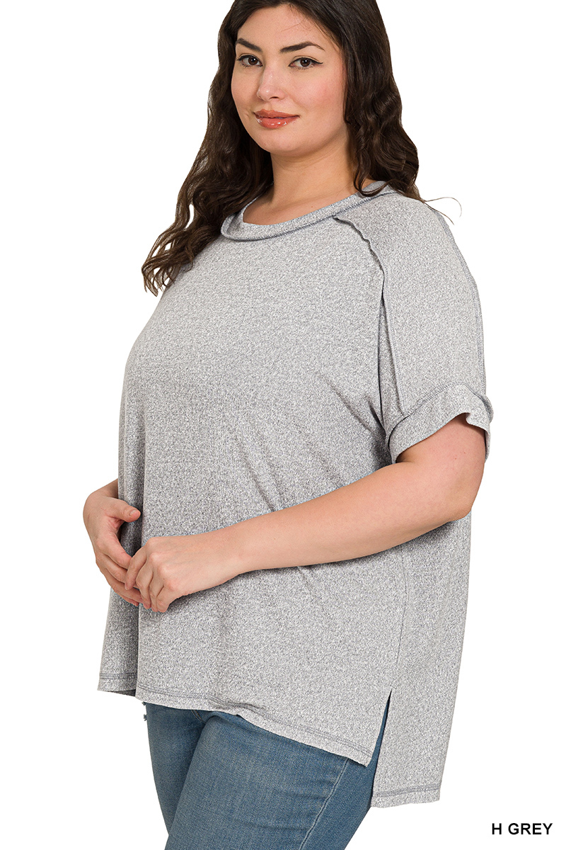 Zenana Full Size Soft Melange Hacci Short Sleeve Hi-low Tee Plus Size