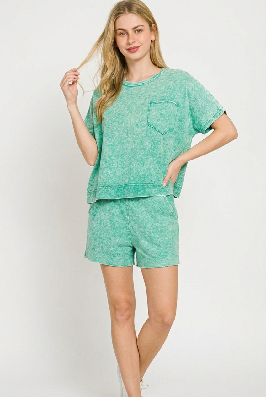 Zenana Halo Snow Washed Boxy Top & Shorts Set