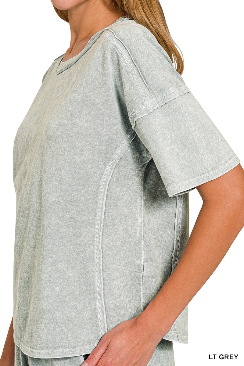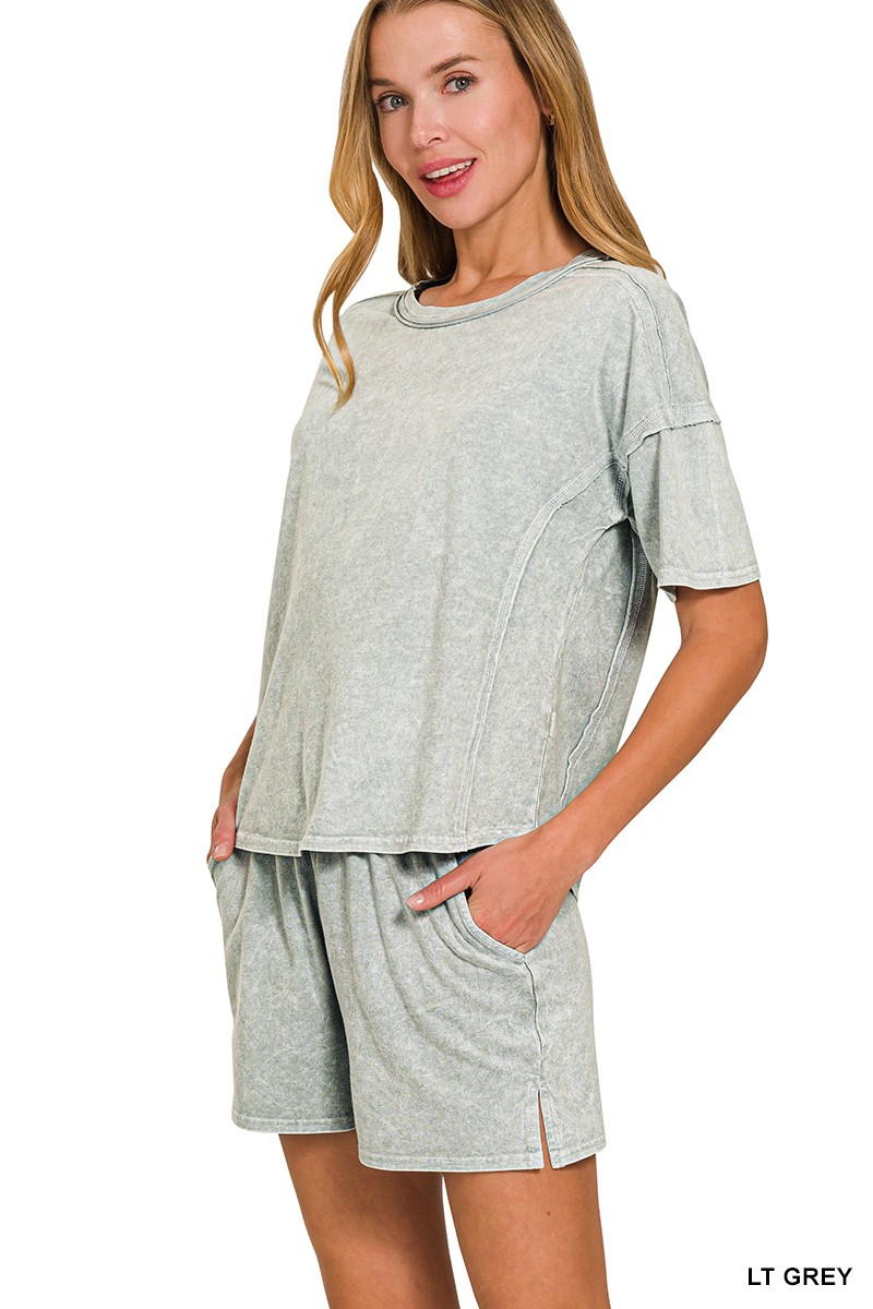 Zenana Halo Snow Washed Short Sleeve Tee and Shorts Set