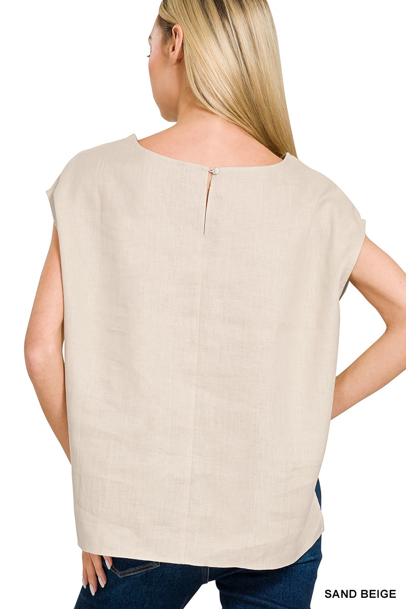 Zenana Linen Round Neck Cap Sleeve Top