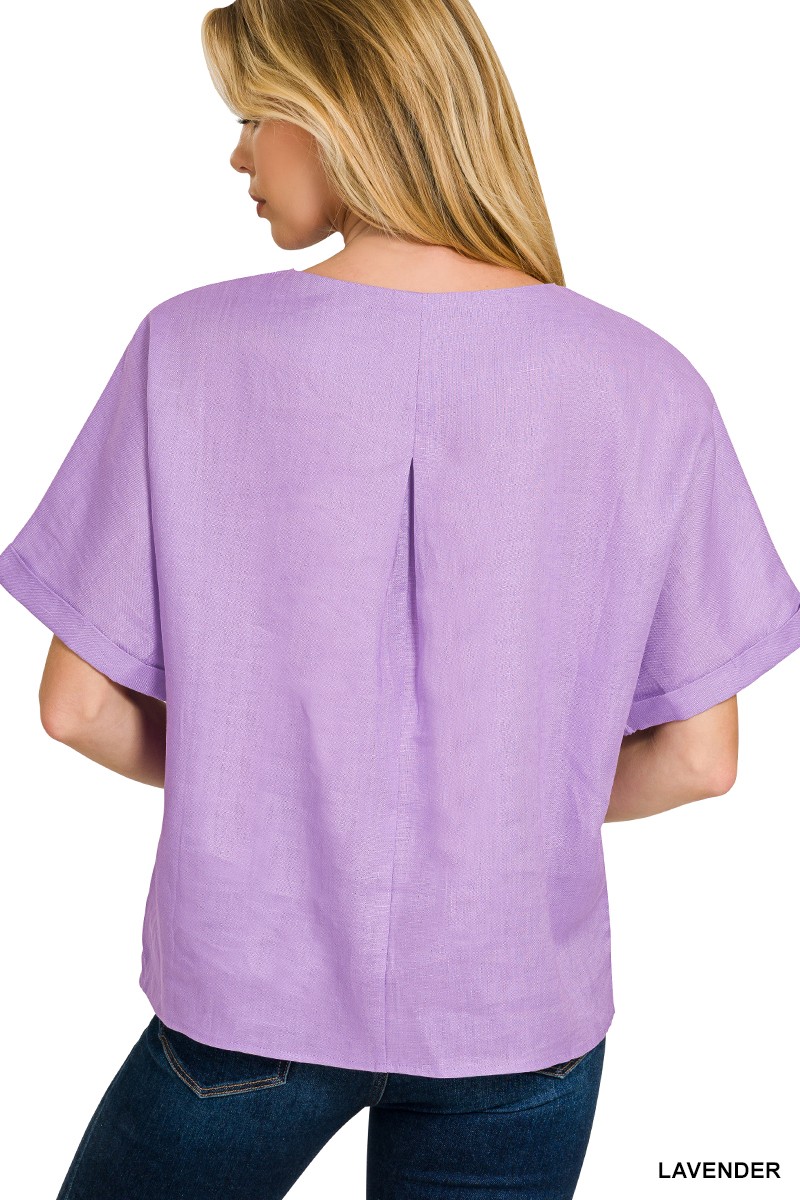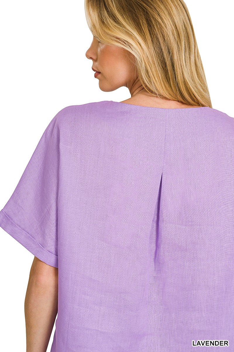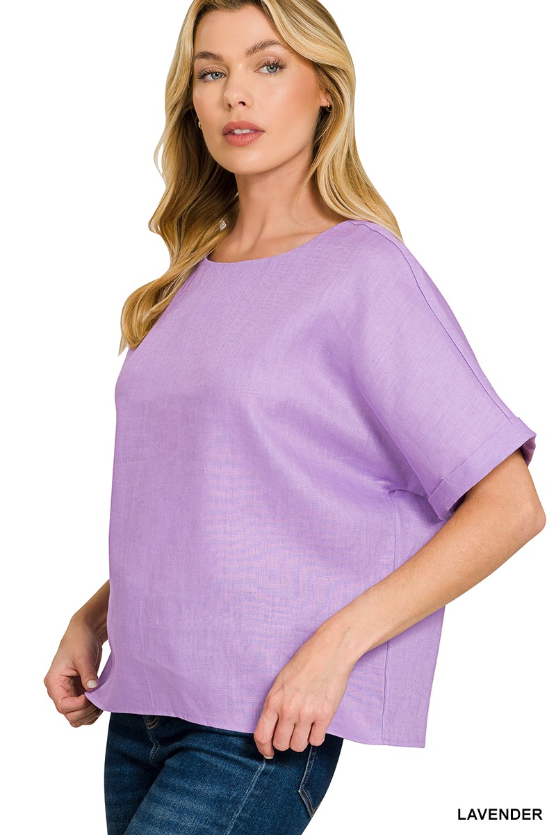 This 100% linen top features a classic round neck and cuffed sleeves for a timeless and chic look. The natural linen fabric offers breathability and comfort, ideal for warmer days. The round neck design adds a touch of simplicity and sophistication to the top. With cuffed sleeves providing a stylish detail, this top can be easily dressed up or down for various occasions. Embrace the laid-back elegance of linen with this versatile and stylish round neck top.