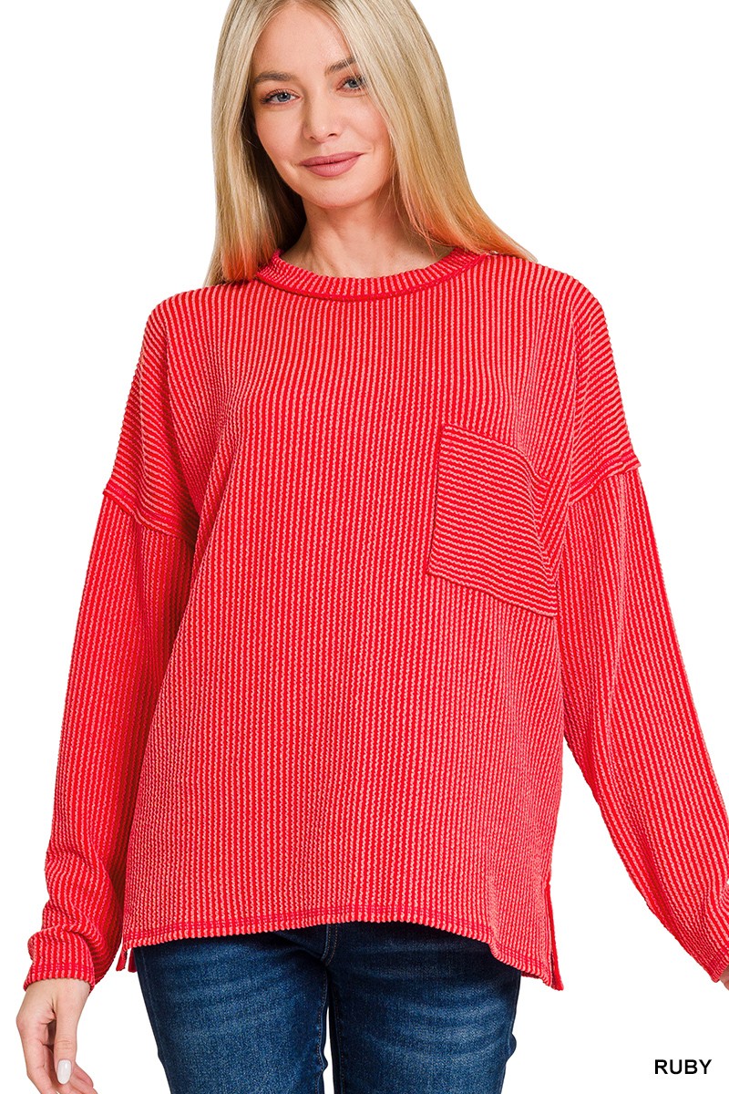 Achieve a laid-back and stylish look with this long sleeve drop shoulder rib top. The drop shoulder design adds a casual and relaxed vibe to the classic ribbed style. Perfect for layering or wearing on its own for a comfortable yet chic outfit. Pair it with jeans or leggings for an effortless and on-trend ensemble.