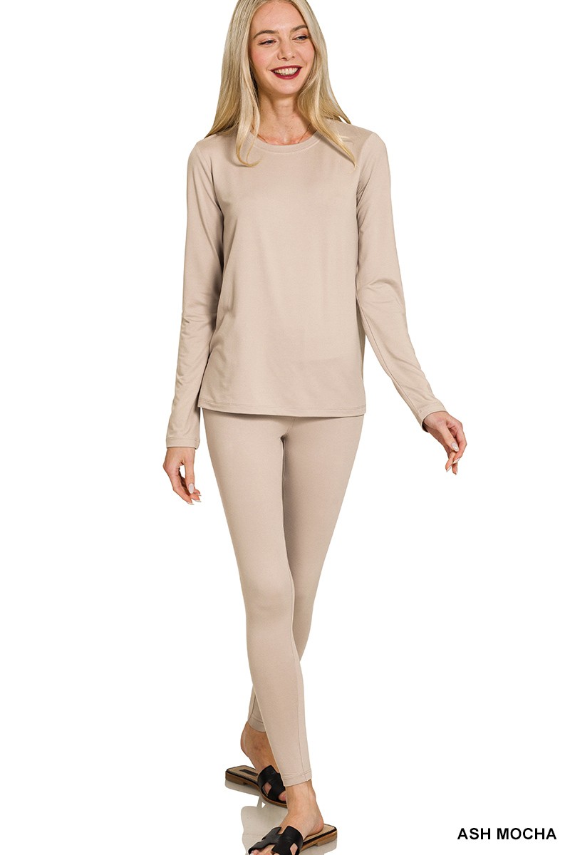 Zenana Microfiber Round Neck Top and Leggings Set
