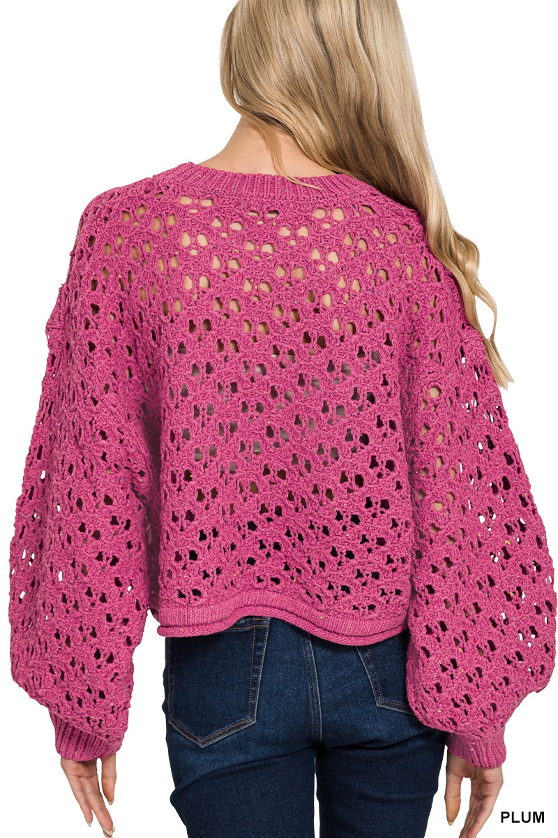 Zenana Oversized Cropped Crochet Knit Sweater