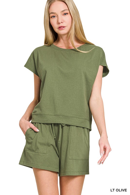 The Premium Cotton Top & Shorts Set is a versatile and comfortable outfit option that combines style with ease. Made from premium cotton fabric, this set offers a soft and breathable feel, ideal for lounging or casual wear. The top features a classic silhouette that can be easily paired with other pieces in your wardrobe, while the matching shorts provide a cohesive and put-together look. This set is perfect for staying stylish and comfortable at home or for running errands on warm days. The premium cotton material ensures durability and comfort, making this set a practical and stylish addition to your collection.
