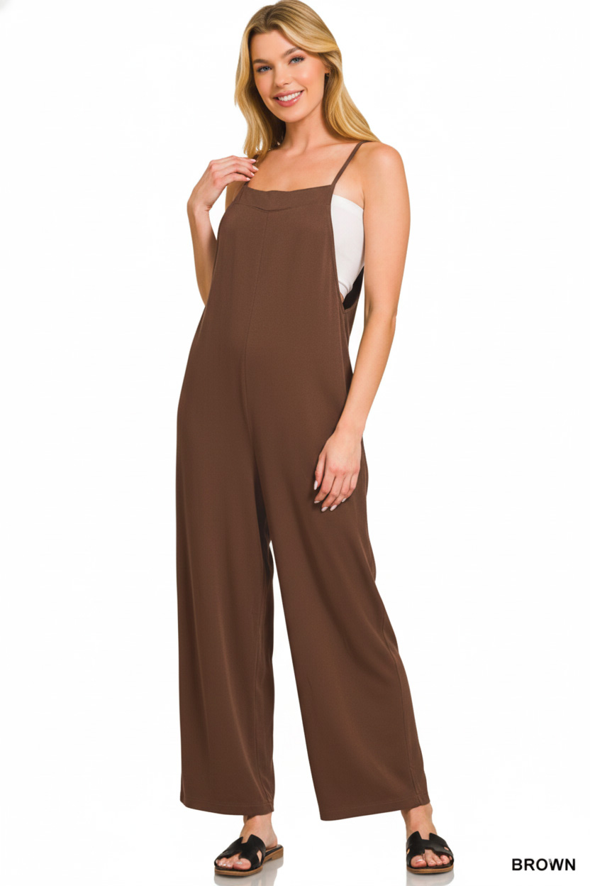 This Rayon Woven Wide Leg Jumpsuit is a stylish and comfortable choice for any occasion. The rayon fabric offers a soft and flowing drape, perfect for a flattering silhouette. The wide leg design adds a touch of sophistication and elegance to the jumpsuit. Dress it up with heels for a night out or keep it casual with sandals for a day look. Stay on-trend and effortlessly chic with this versatile jumpsuit.