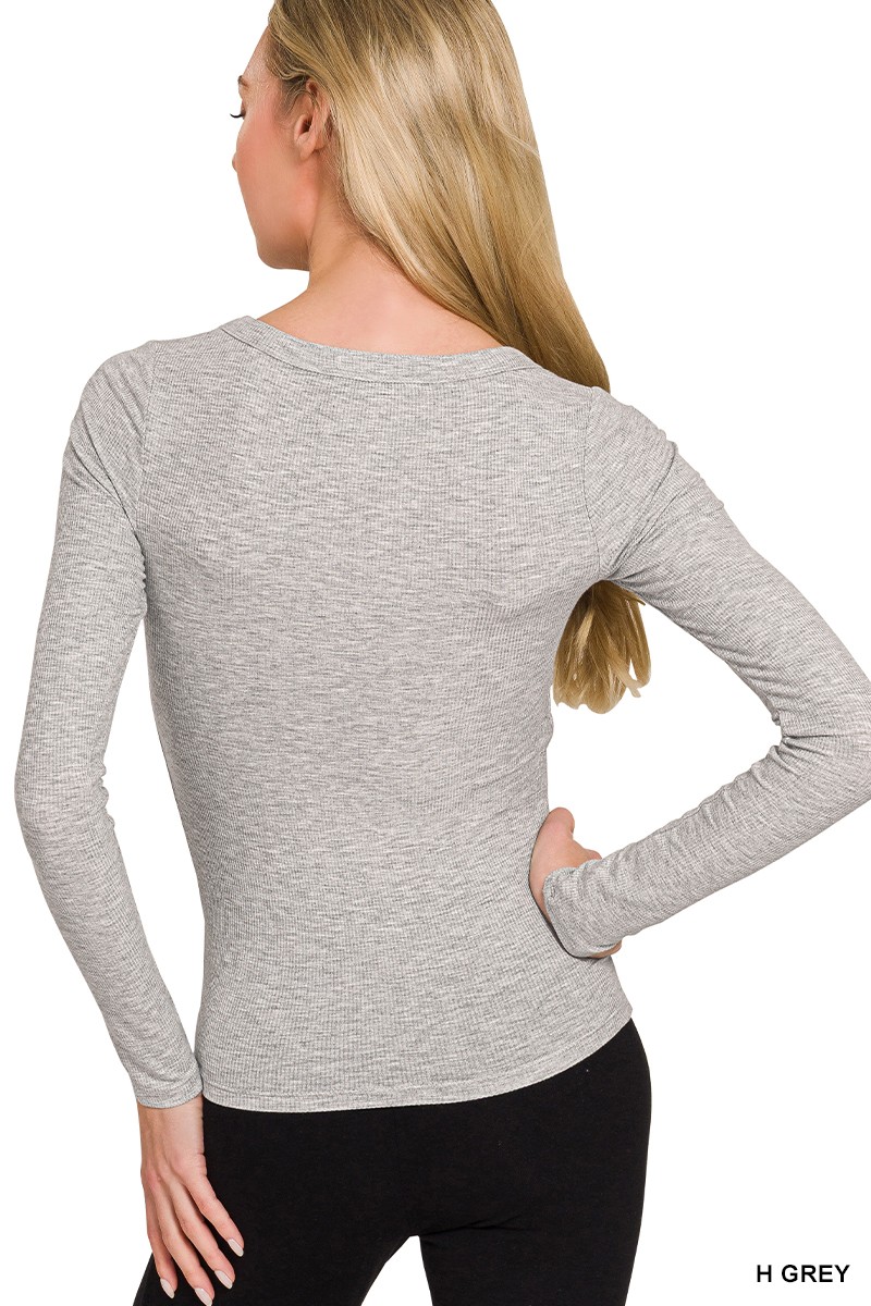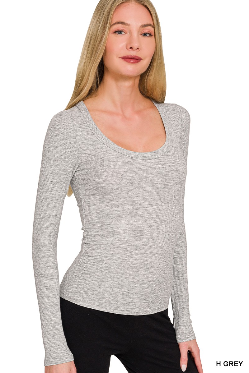 This ribbed knit scoop neck long sleeve T-shirt is a wardrobe essential. Crafted from a soft and comfortable ribbed knit fabric, it offers a flattering scoop neckline and long sleeves for added warmth. The versatile solid color makes it easy to dress up or down, perfect for layering or wearing on its own. Its stylish and fashion design ensures you'll always look your best. Made with durable materials, this T-shirt is built to last. Available in various sizes to ensure a perfect fit. Ideal for everyday wear, this T-shirt combines comfort, style, and versatility.