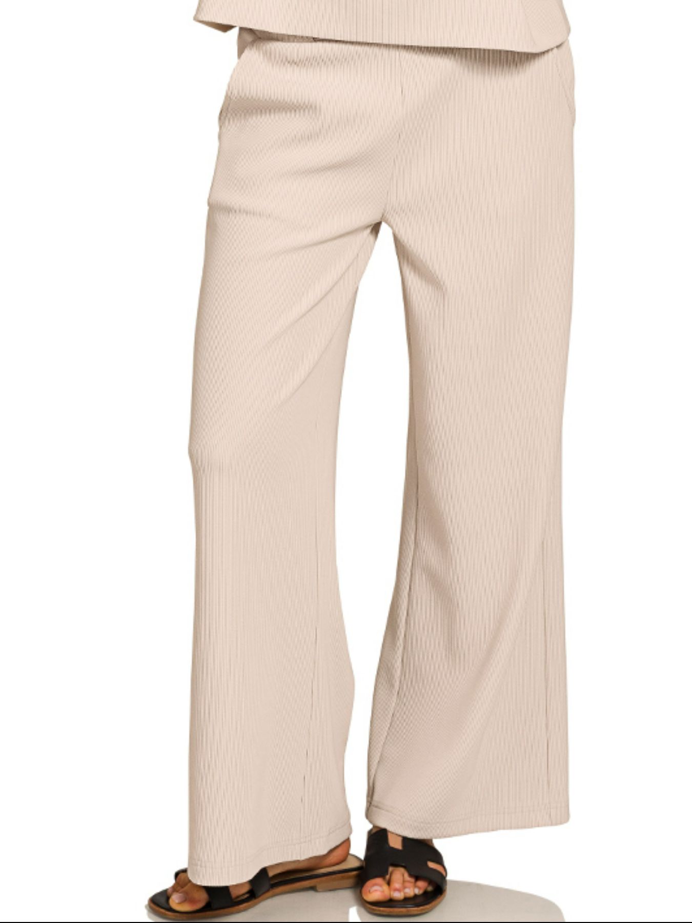 This comfortable and stylish set includes a ribbed round neck tee and matching pants. Perfect for lounging at home or running errands in style. The ribbed texture adds a trendy touch to this classic silhouette. Made from soft and breathable fabric for all-day comfort. Elevate your casual wardrobe with this must-have set.