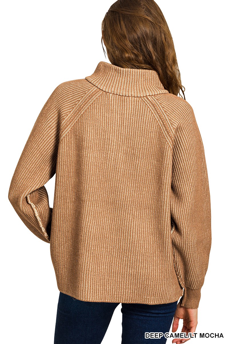 Zenana Ribbed Two Tone Half Zip Sweater
